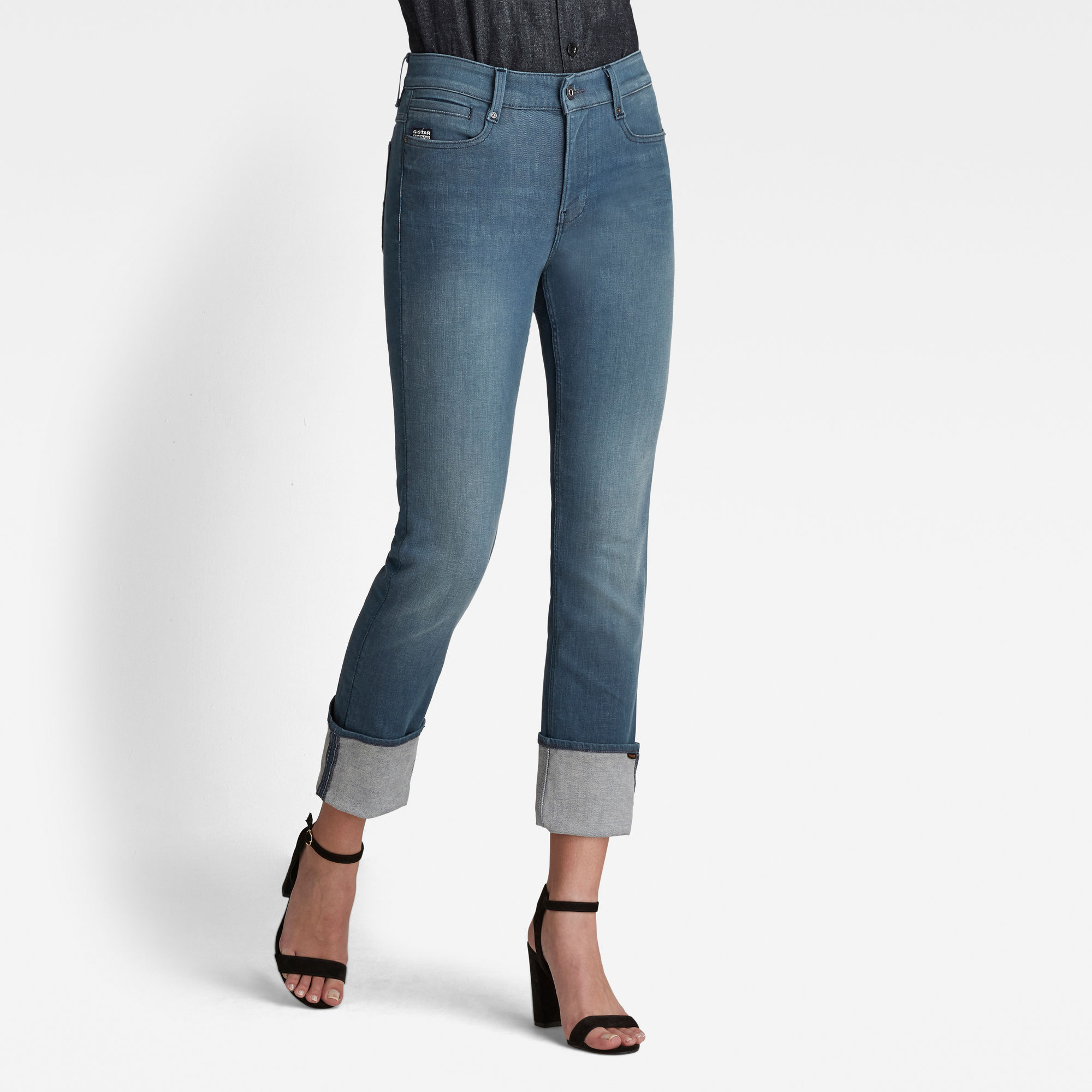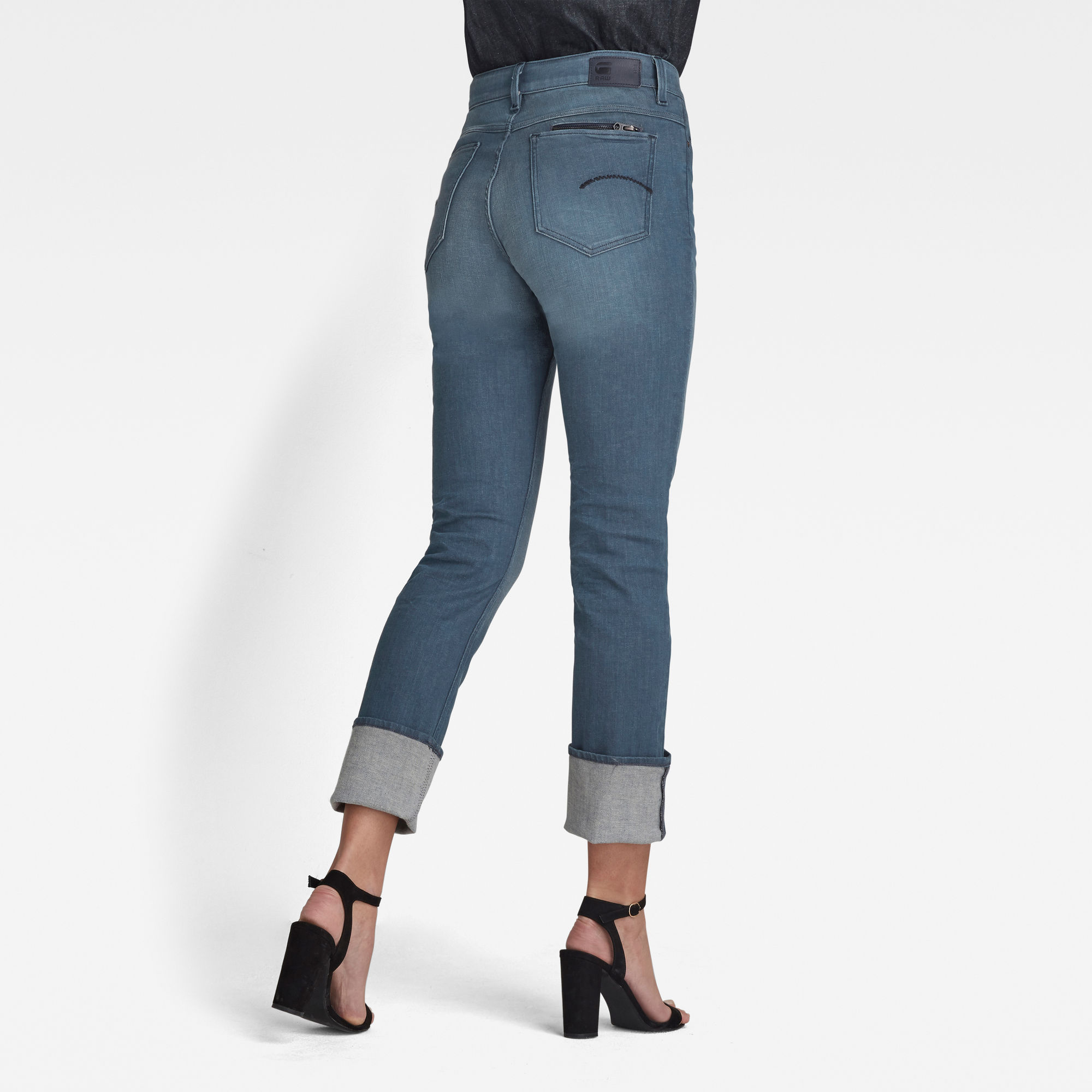 Details are added by the turn-up leg hem and the additional zip pocket inside one of the back pockets. Mid waist,Turned up leg hems,Slim welt coin pocket,Back pockets with a zipper pocket inside one of them,Zip & button closure Inspired by nature and how nature does not produce any waste, G-Star RAW collaborated with Italian Denim Mill Candiani to create a denim fabric with the world’s first regenerative indigo dye concept. This means that the waste from indigo dyeing process is designed to become a fertilizer for the agricultural industry. This unique indigo shade merges EarthColors® by Archroma derived from upcycled cotton waste with hydrosulphite free Indigo technology and KItotex®, a natural polymer derived from upcycled food industry waste.,9.5 oz stretch denim, 3×1 right hand twill construction,97% Organic cotton, 3% Elastane (ROICA™ EF),Organic cotton fibers are free of toxic pesticides and chemical fertilizers. This helps to improve soil quality, prevents water contamination (saves 60% water) and conserves biodiversity.,ROICA™ EF is a Global Recycled Standard Certified stretch yarn produced in Germany and is designed to keep your garment in shape wear after wear.
