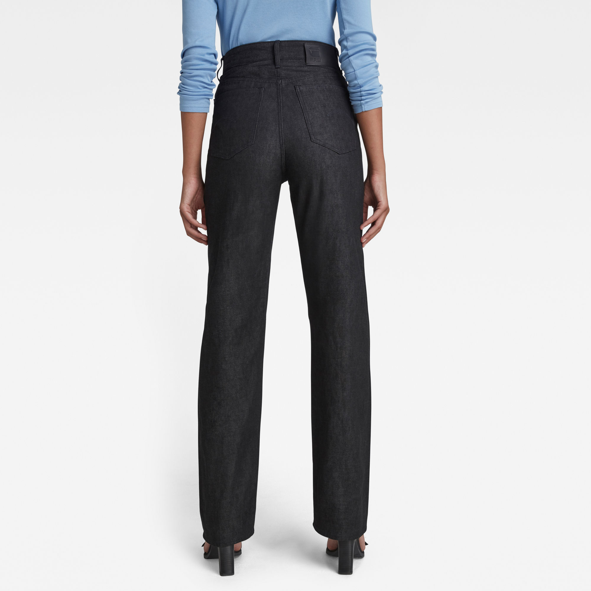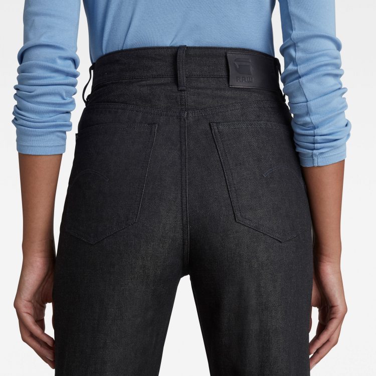 Either wear them cropped with a turn up leg hem or full-length for a more classic look. The Inspiration of this blue print comes from the Teddy girls, the forgotten girl gang from the 50's, that rebelled against austerity. This youth culture created their own identity and started a new age of androgynous that has never been more relevant than today. Ultra high waist,Bold back pockets,Coin pocket under the waistband,Delivered with turned up leghem- option to unfold,Zipper & button closure,Cow leather G-Star RAW label at the backside waist A black denim woven in a lighter weight 2X1 right hand twill construction, offering a subtle slub texture. The color blend of grey and black creates this 3D black color effect. Weight 9.6 oz,Slub texture,100% Cotton,By buying cotton products from G-Star RAW Raw, you're supporting more sustainable cotton farming.