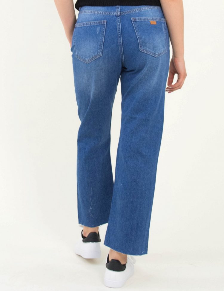 Γυναικείο μπλε τζιν παντελόνι ψηλόμεσο Straight Fit