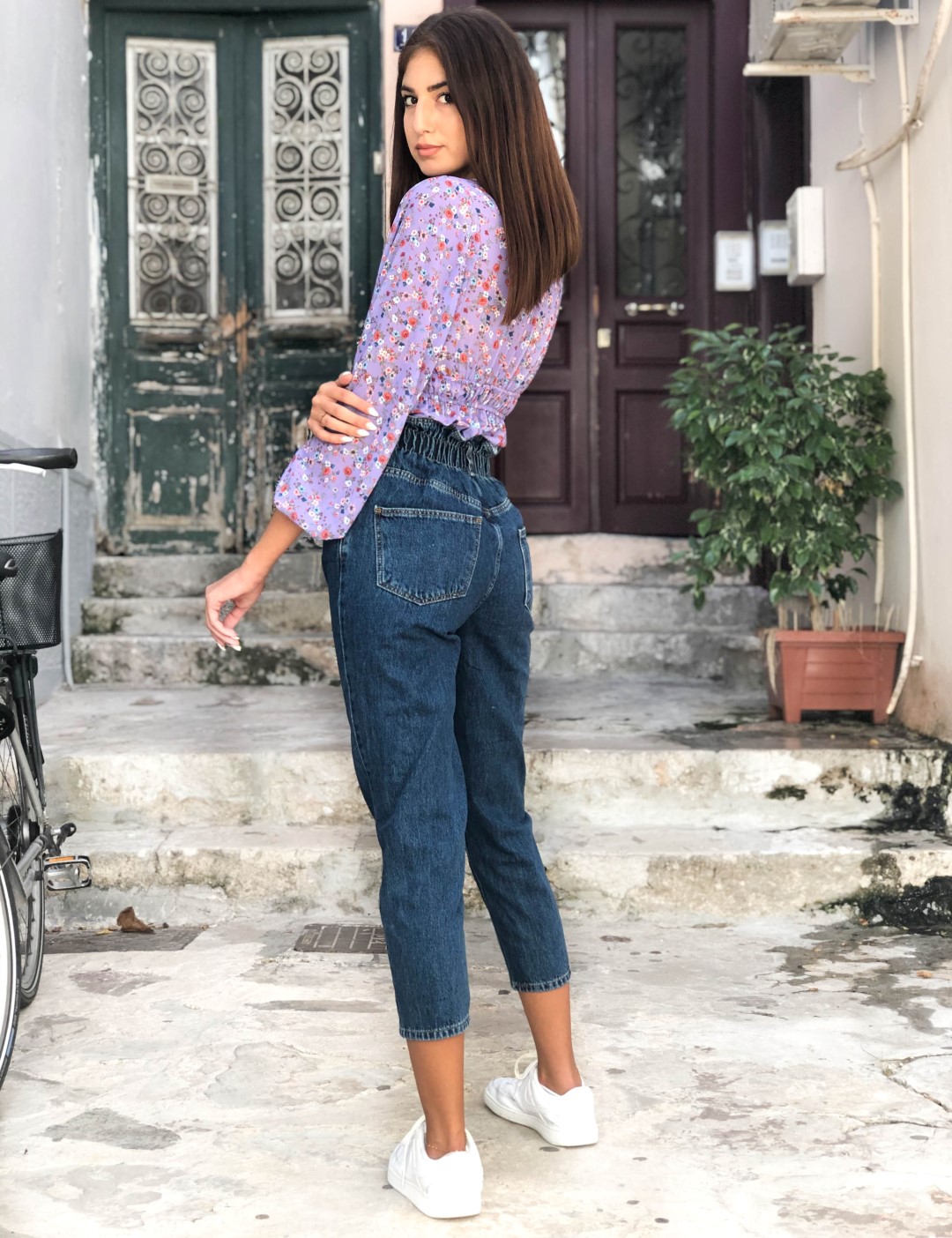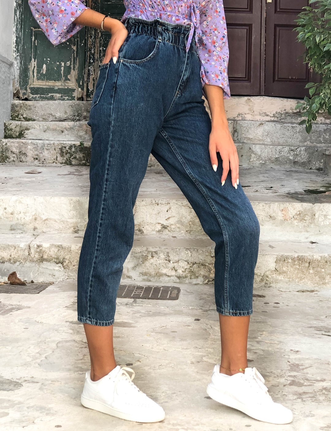 Γυναικείο μπλε τζιν ψηλόμεσο με λάστιχο