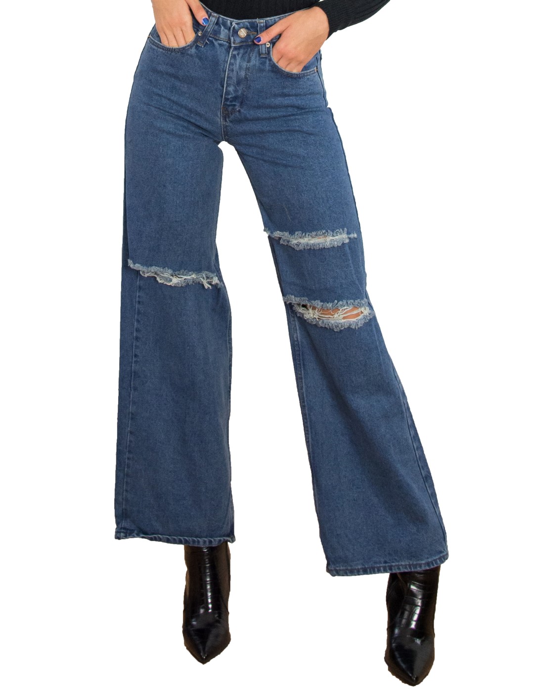 Γυναικείο μπλέ Wide Leg τζιν με σκίσιμο – Huxley & Grace