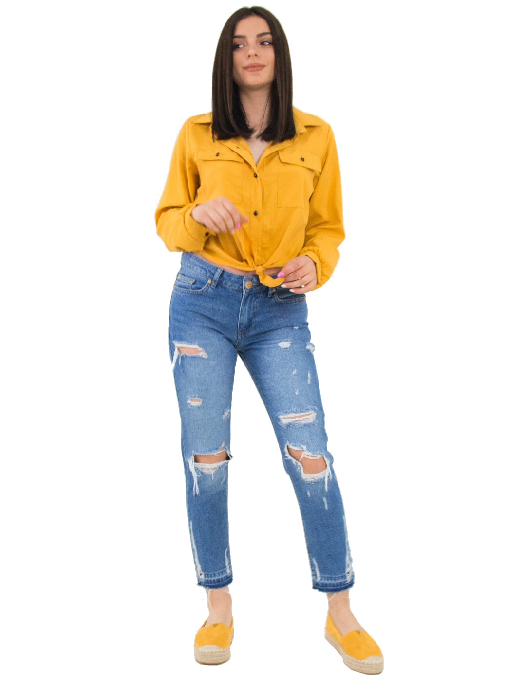 Γυναικείο μπλε τζιν Boyfriend σκισίματα μεσοκάβαλο