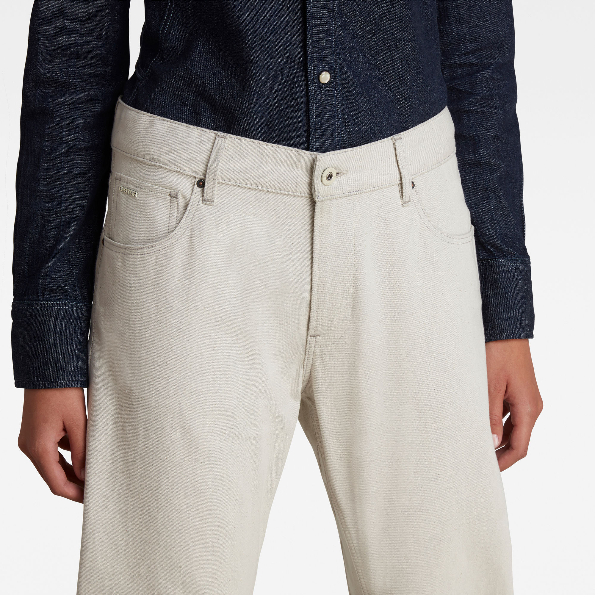 The asymmetric tapered leg is created by the twisted side and inseams. After more than 10 years the Arc still offers a unique and timeless 3D-design that doesn’t follow any set rule from gender to trends or the common way of garment construction. This boyfriend 3D Arc jeans offers a new take on the existing silhouette. It's showing room at the seat giving space to create play of forms that Pierre Morrisset designed the first time and shapes it down by a soft tapered leg. A small fold over leg hem will complete this look. Slightly dropped crotch,Regular at the hips, roomy around the thigh, tapered towards the ankle,5 pockets,3D design -Inner leg panels, shaping darts at the inner knee,Zipper & button closure,Choose your usual jeans size for a real boyfriend look or one size down to wear it higher and tighter on your hips. Kara ecru denim is a compact 2×1 right hand twill construction with a greyish weft. Mixed with an ecru warp results in a light shade variation of the original Kara denim. In addition, the irregular slub character adds authenticity. Weight 9.8 oz,Slub texture,100% Cotton,By buying cotton products from G-Star RAW Raw, you're supporting more sustainable cotton farming.