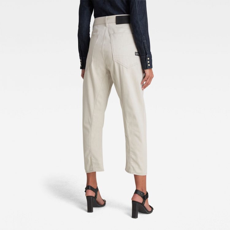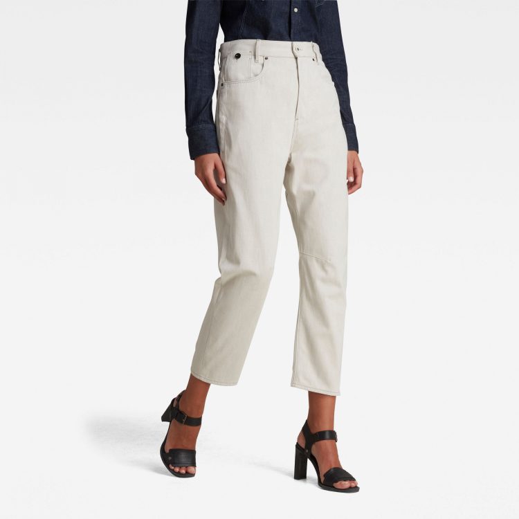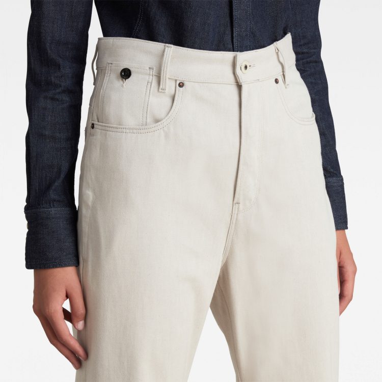 These jeans can also be worn belted, creating a high waist look and a cropped length. When this design is preferred more fitted, just order a size smaller. The inner knee shows shaped darts, creating the ´O´ leg effect, we know from the G-Star RAW Type C jeans. Chino pockets at the side refer to a D-Staq jeans. Low waist- dropped crotch,Alternative to wear belted- high waist,Fitted along the hip, wider through the legs,Inset pockets with grown coin pocket, oversized back pockets,Button closure,Generic size offers a looser fit. Order a size smaller to wear this look more fitted Kara ecru denim is a compact 2×1 right hand twill construction with a greyish weft. Mixed with an ecru warp results in a light shade variation of the original Kara denim. In addition, the irregular slub character adds authenticity. Weight 9.8 oz,Slub texture,100% Cotton,By buying cotton products from G-Star RAW Raw, you're supporting more sustainable cotton farming.