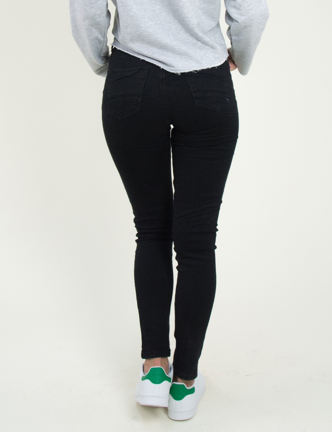 Γυναικείο ψηλοκάβαλο, ελαστικό τζην παντελόνι της εταιρείας Damaged με Push Up εφαρμογή. Μαύρο κλασσικό το χρώμα του, σωλήνας στο κάτω μέρος. Είναι πεντάτσεπο και κλείνει με φερμουάρ και κουμπί Κανονική προς στενή εφαρμογή Σύνθεση: 98% cotton, 2% elast