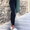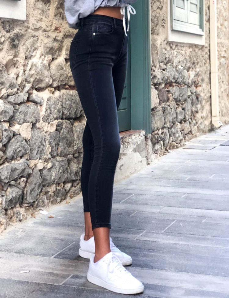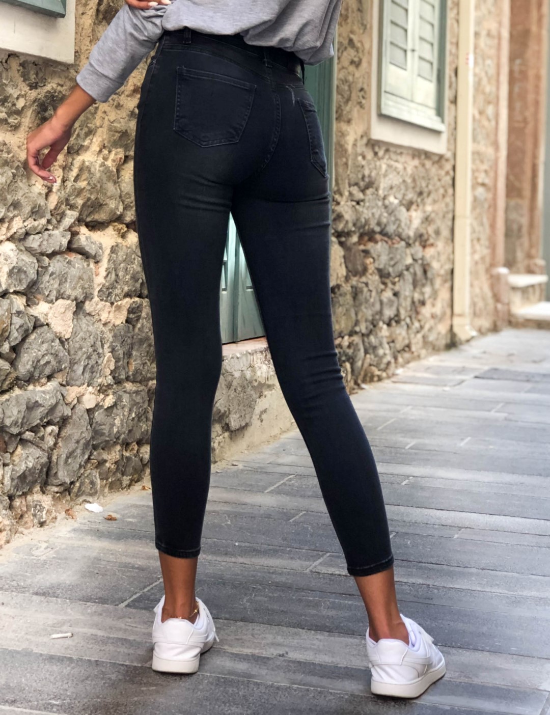 Γυναικείο μαύρο ψηλόμεσο τζιν με ξέβαμμα