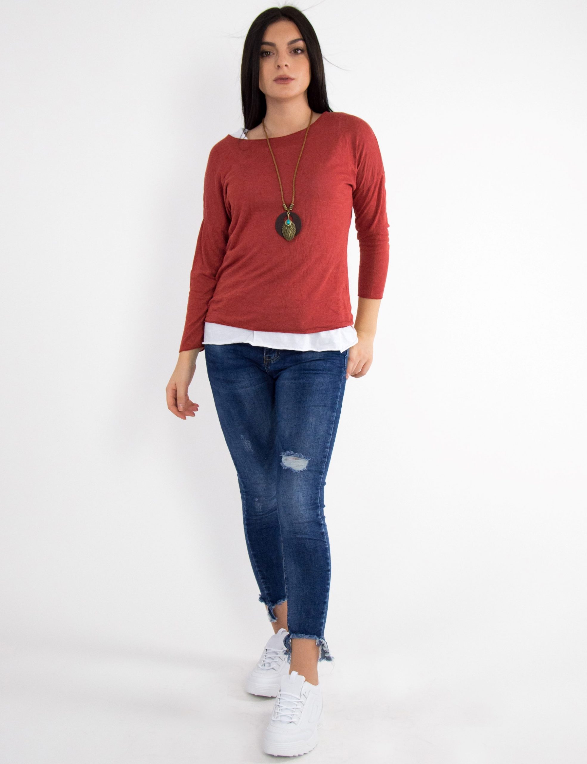 Γυναικείο μπλε ξεβαμμένο παντελόνι με ξέφτια ελαστικό
