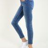 Γυναικείο Lee Scarlett τζην παντελόνι σε μπλε σκούρο χρώμα με ξεβάμματα και μικρές φθορές. Ψηλόμεσο, πεντάτσεπο με δερμάτινο λογότυπο της εταιρείας Ίσια γραμμή Στενή εφαρμογή με ελαστικότητα Σύνθεση: 90.5% cotton, 8% lyocell, 1.5% elast Το μοντέλο έχει ύψος 1.78 και βάρος 55 κιλά. Φοράει 27.