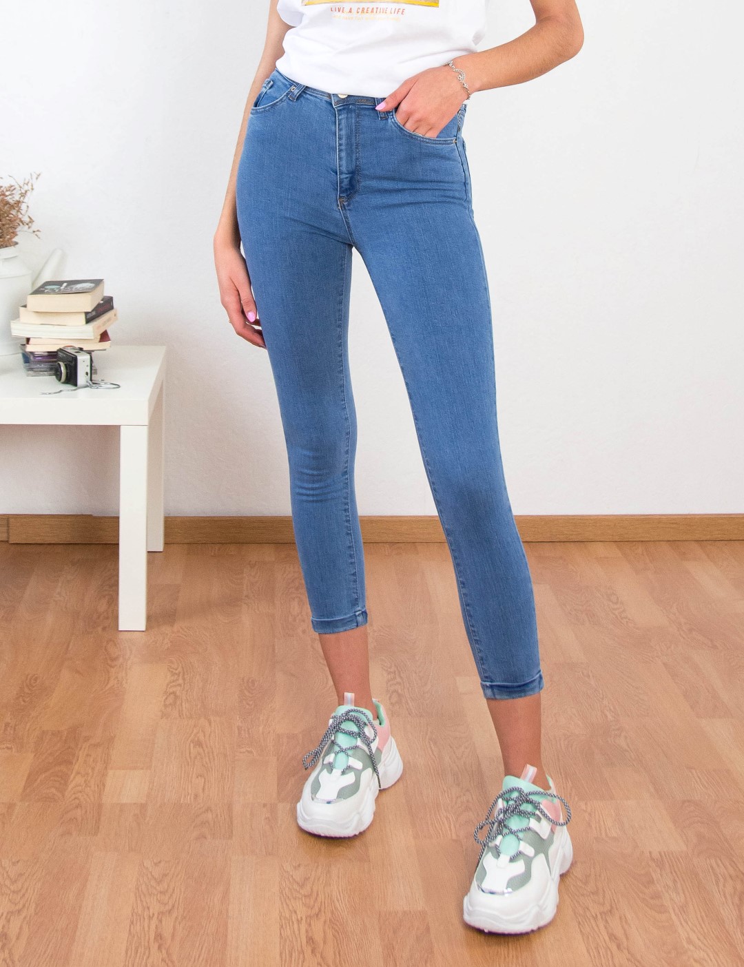 Γυναικείο μπλε τζιν παντελόνι ελαστικό