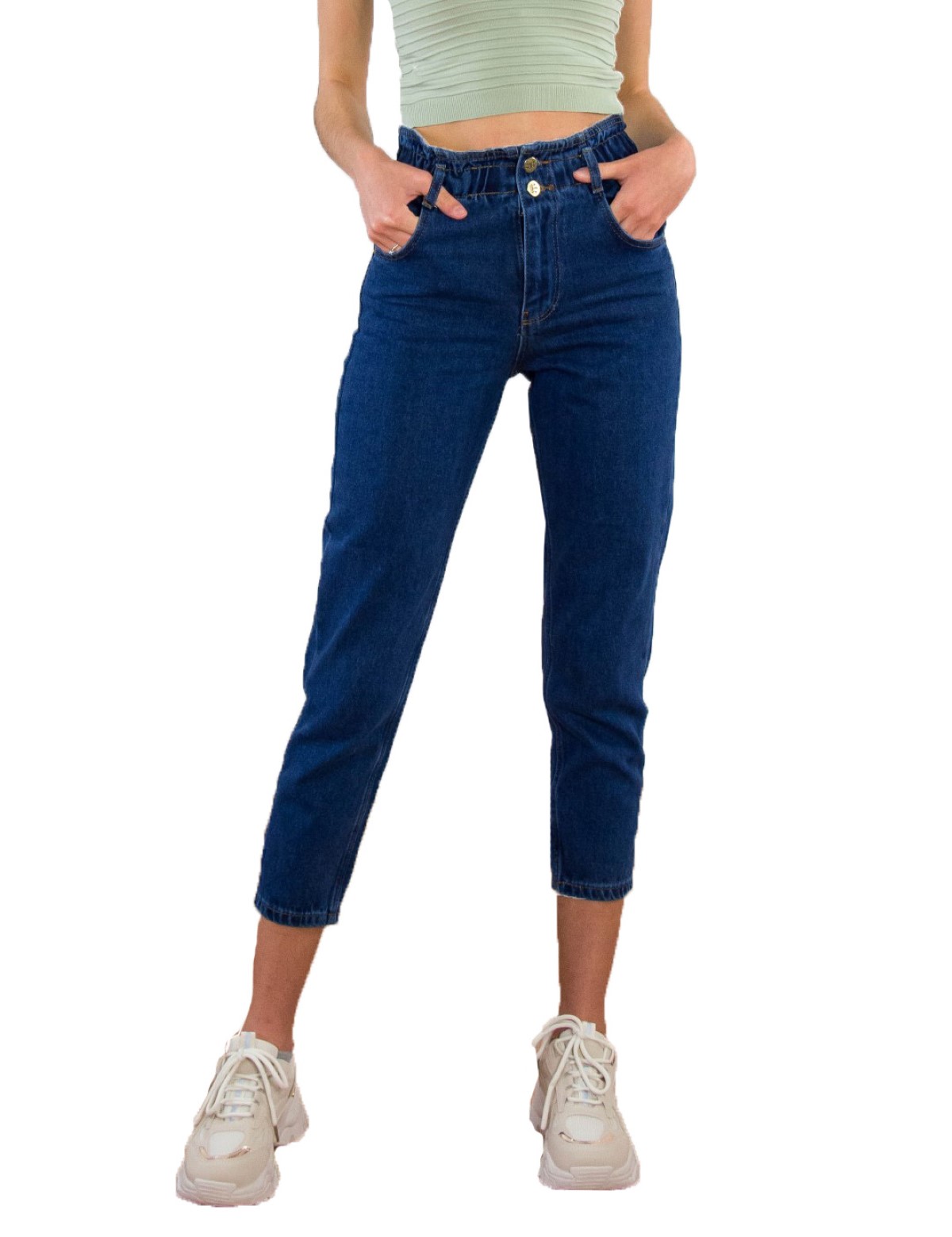 Γυναικείο μπλε τζιν ψηλόμεσο με λάστιχο