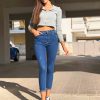 Γυναικείο μπλε ψηλόμεσο τζιν σωλήνας με φθορές – Huxley & Grace