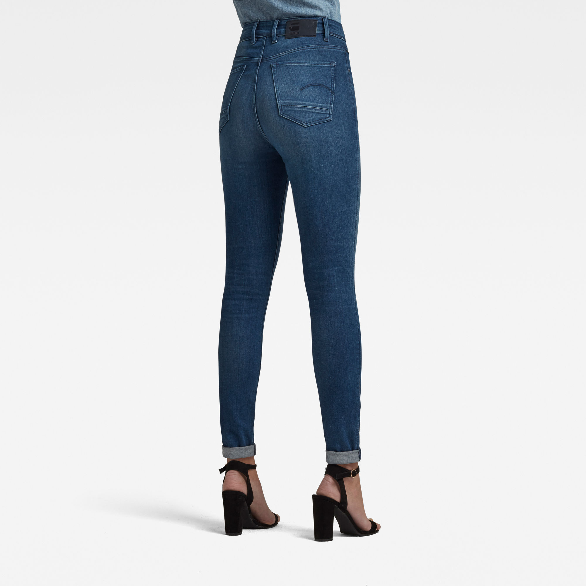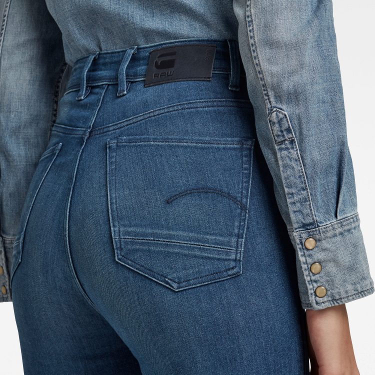 The back pockets are placed higher to ensure ease of access whilst cruising on the motorcycle. It’s ultra-high waist and skinny leg gives a modern silhouette whilst echoing an era of rebellion. Ultra high waist,Tight from top to bottom,High placed back pockets,5 pockets,Zip fly,G-Star RAW leather label at backside waistband The Kafey Ultra High Jeans is constructed from soft denim with a red cast indigo base shade and super stretch-ability for a comfortable fit. Soft denim,Super stretch ability,98% cotton, 2% elastane,By buying cotton products from G-Star Raw, you're supporting more sustainable cotton farming through the Better Cotton Initiative. Better Cotton is sourced via a system of Mass Balance. Find out more about our sustainable materials.,LYCRA® T400® ECOMADE is a sustainable stretch fiber, partially made from recycled and renewable resources. Designed to make garments last longer and hold their shape wear after wear.