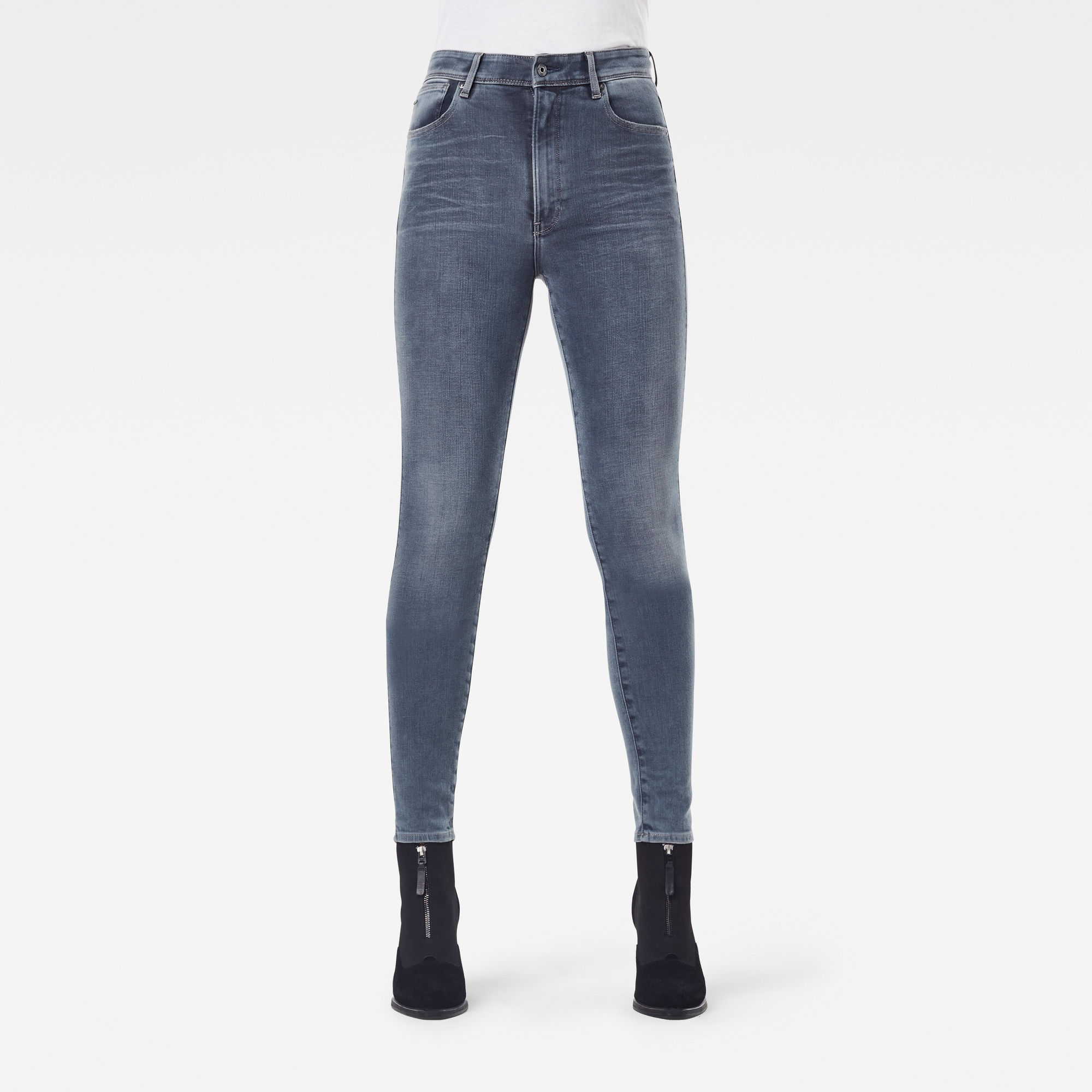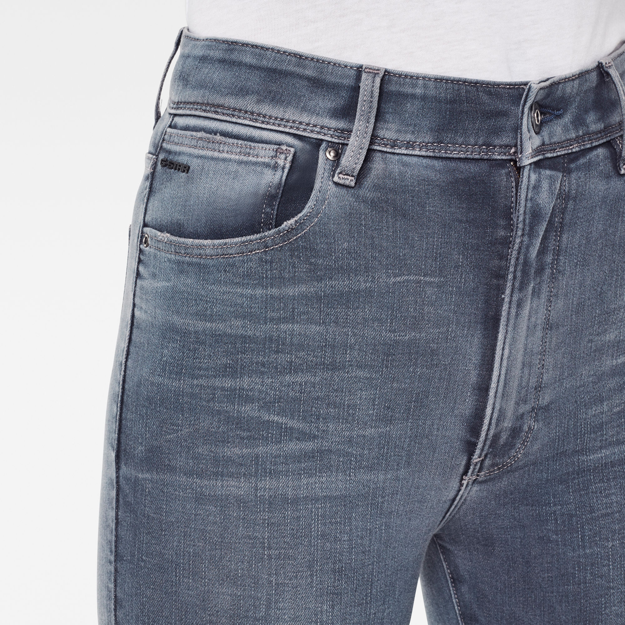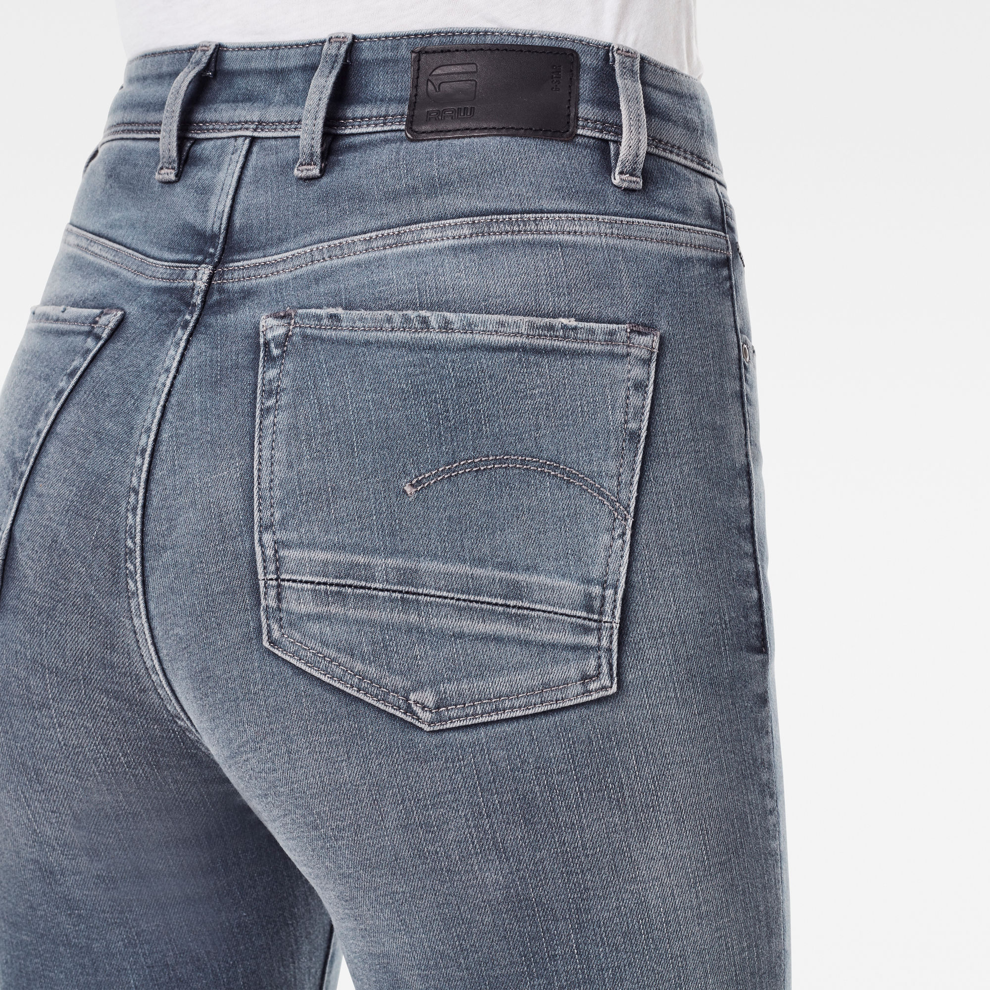The back pockets are placed higher to ensure ease of access whilst cruising on the motorcycle. It’s ultra-high waist and skinny leg gives a modern silhouette whilst echoing an era of rebellion. Ultra high waist,Tight from top to bottom,High placed back pockets,5 pockets,Zip fly,G-Star RAW leather label at backside waistband Versatile, high quality superstretch with an authentic denim aesthetic, superb recovery, soft handfeel and special blue-grey shade. 10,2 oz denim – 3×1 right hand twill construction,Excellent stretch, over 35% and superb recovery,91% Cotton, 7% Elastomultiester ( T400® EcoMade), 2% Elastane (Lycra®),The LYCRA® fibers we use are high performance stretch fibers which hold a Gold Level Material Health Certificate from the Cradle to Cradle Products Innovation Institute.,Special blue-grey shade, created by Archroma's sustainable Diresul RDT dyestuff.,By buying cotton products from G-Star Raw, you're supporting more sustainable cotton farming through the Better Cotton Initiative. Better Cotton is sourced via a system of Mass Balance. Find out more about our sustainable materials.