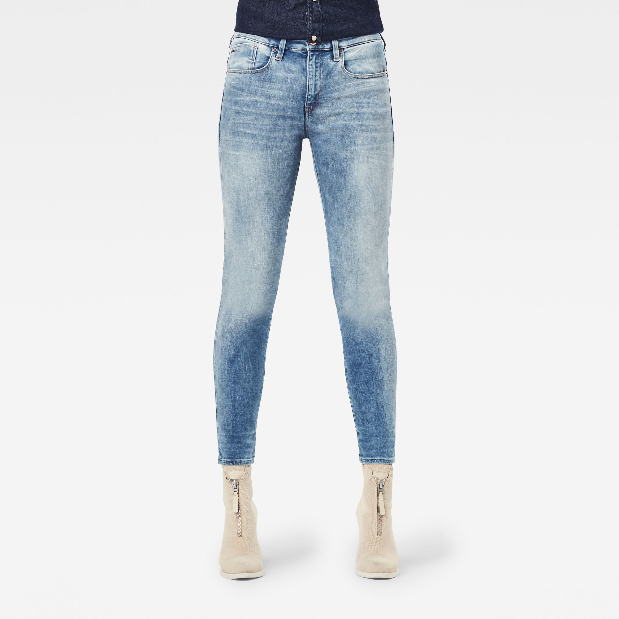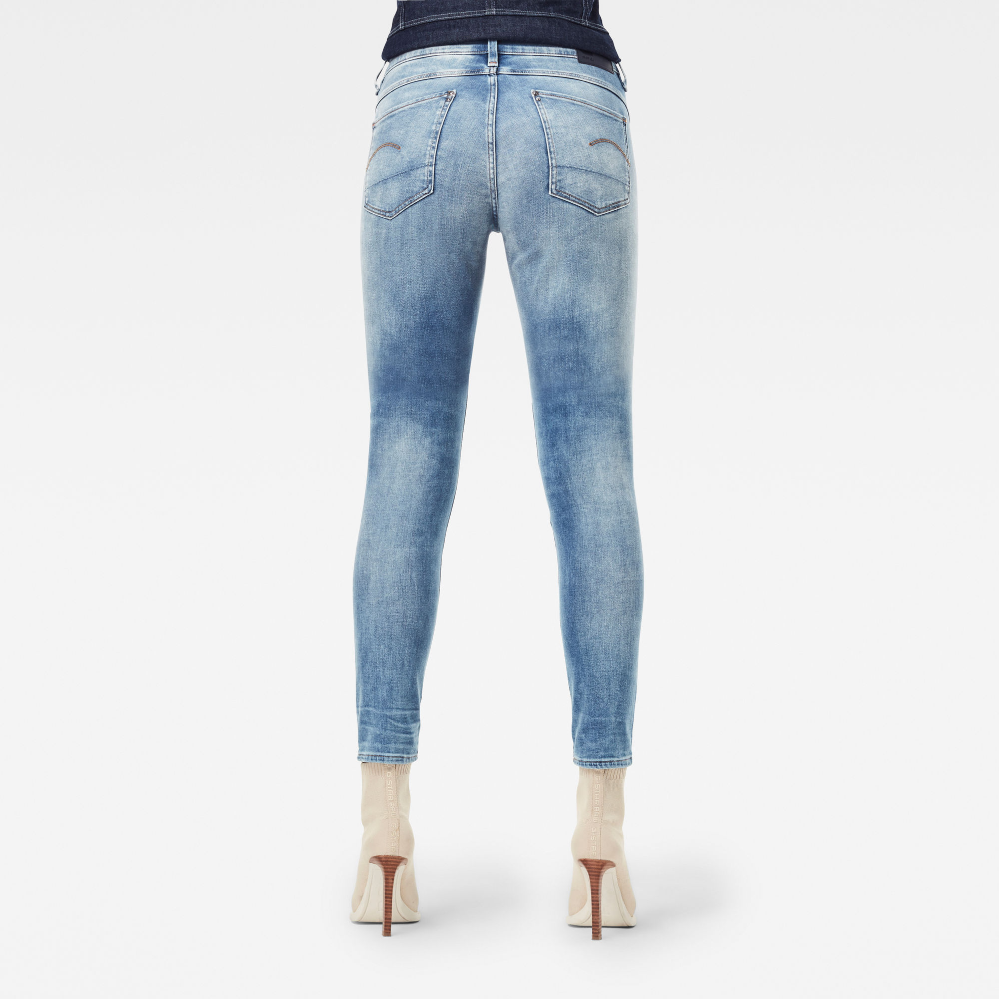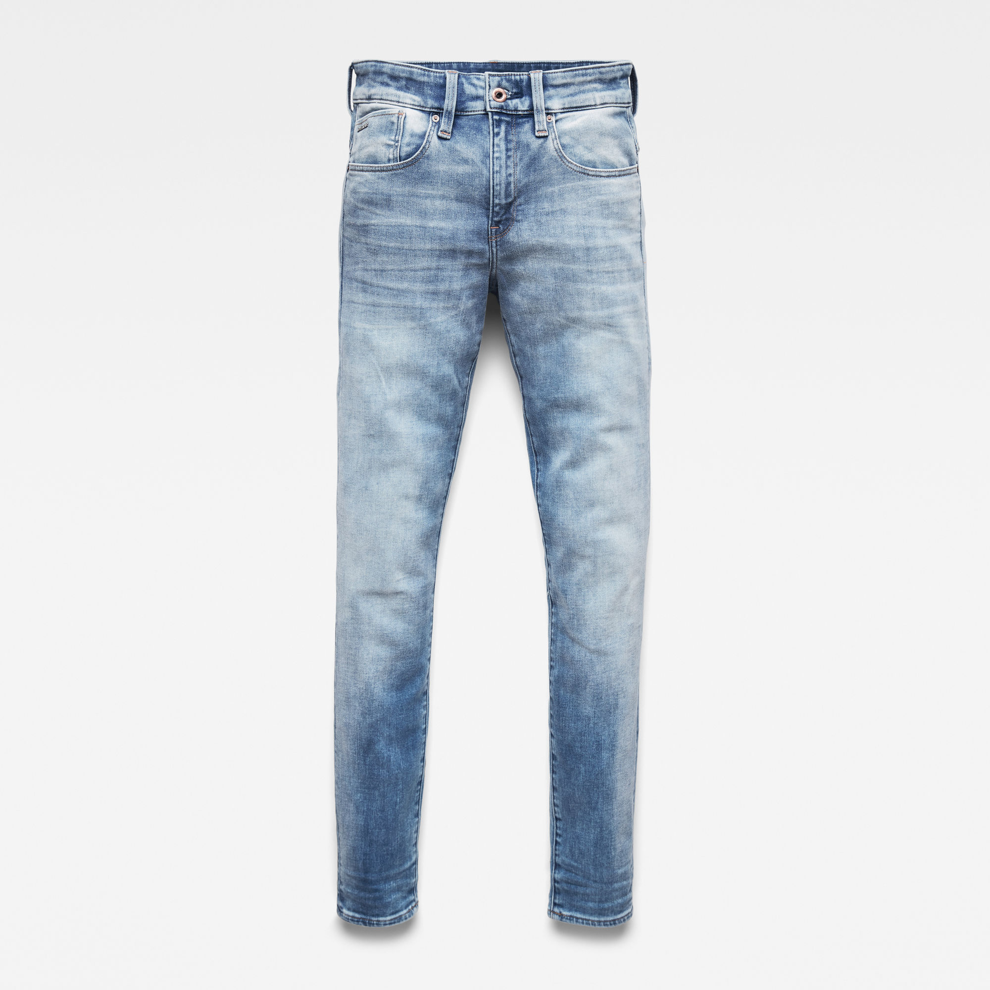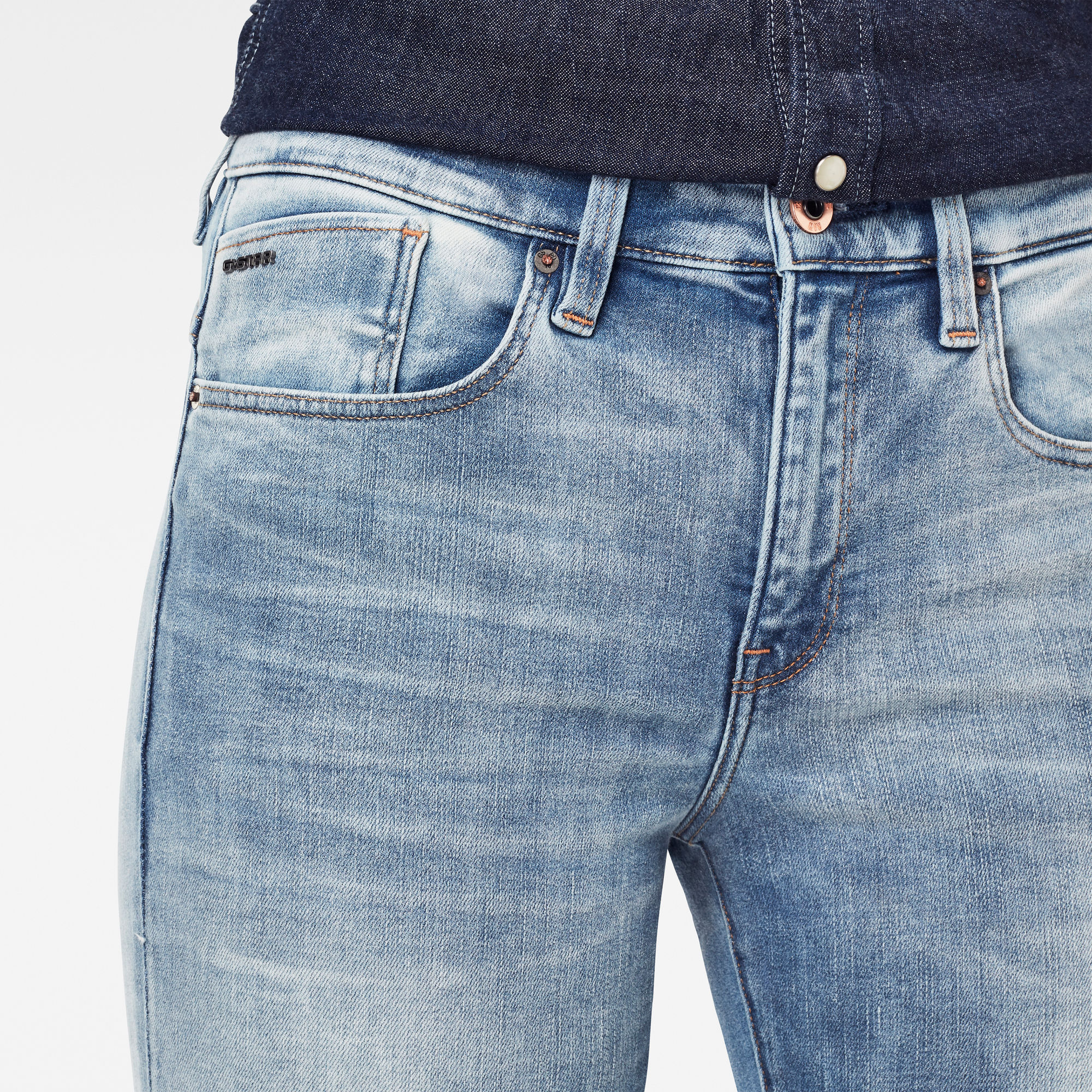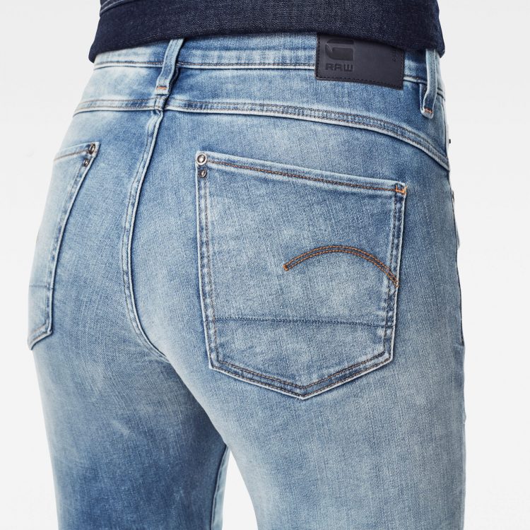 A tailored waistband wraps around tightly to eliminate gap. These jeans offer a zipper closure. Mid waist,Tight from top to bottom,5-pocket construction, angled coin pocket,Tailored wasitband- no gap,Cow leather label at the backside waistband Versatile, high quality superstretch fabric with an authentic denim aesthetic in a pure indigo cast. Offering a superb recovery and soft handfeel. This shade is made with sustainable aniline-free pre reduced indigo technology. Weight 10.2 oz denim,3×1 Right hand twill construction,91% Cotton, 7% Elastomultiester (T400® EcoMade), 2% Elastane (Lycra®),By buying cotton products from G-Star RAW Raw, you're supporting more sustainable cotton farming.,LYCRA® T400® ECOMADE is a sustainable stretch fiber, partially made from recycled and renewable resources. Designed to make garments last longer and hold their shape wear after wear.,Introduced to market by G-Star RAW in collaboration with Archroma and Advance Denim. This aniline-free pre-reduced indigo technology holds a Gold Level Material Health Certificate from the Cradle to Cradle Products Innovation Institute.
