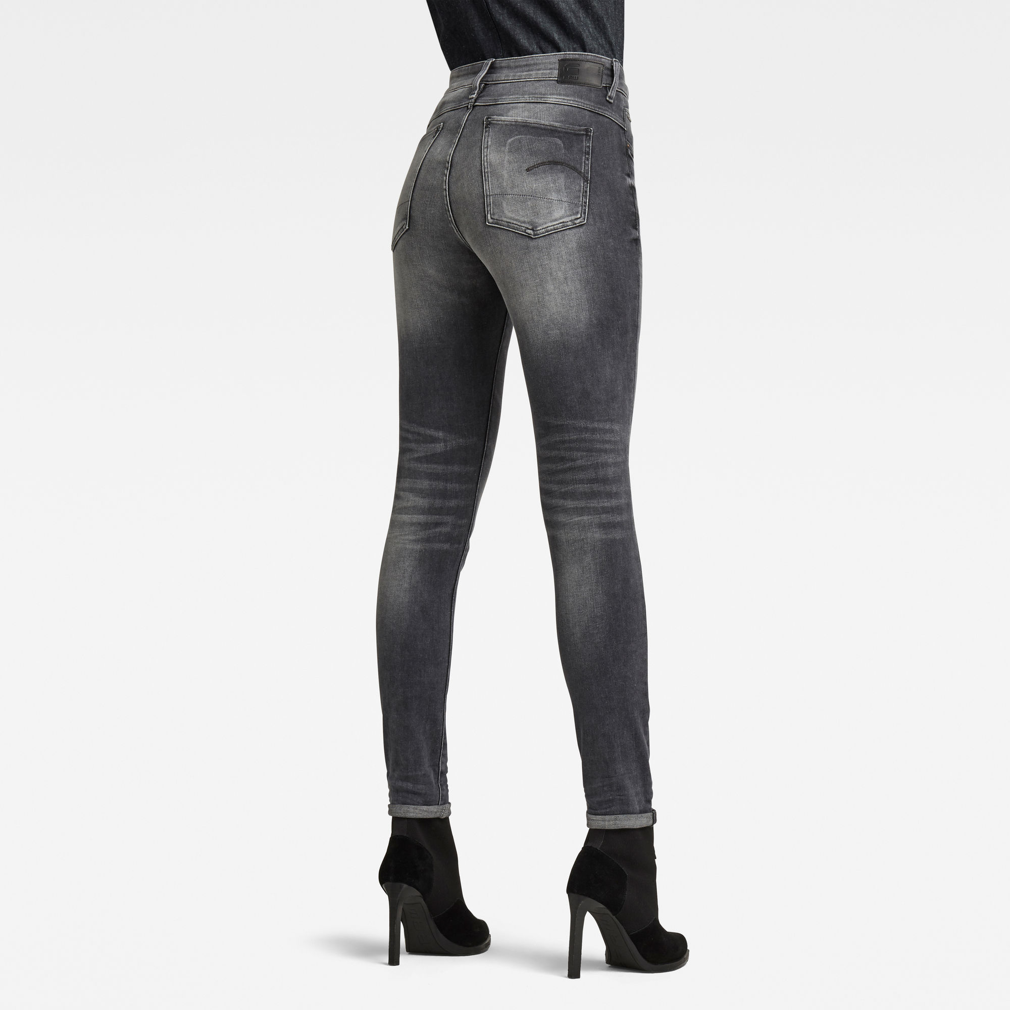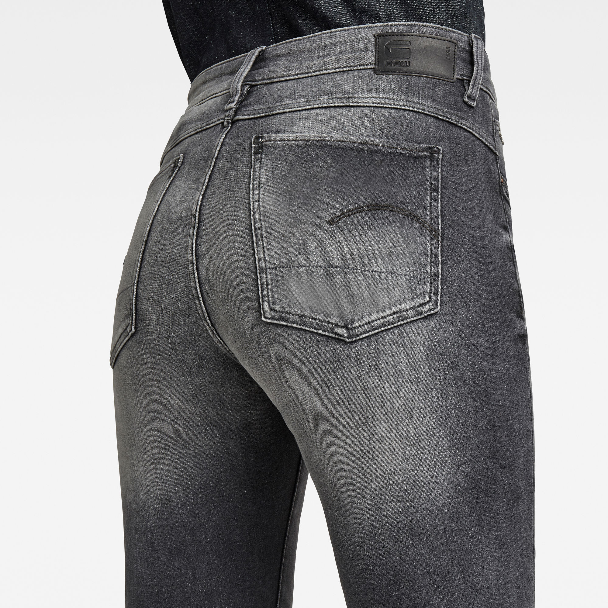 A tailored waistband wraps around tightly to eliminate gap. These jeans offer a zipper closure. Mid waist,Tight from top to bottom,5-pocket construction, angled coin pocket,Tailored wasitband- no gap,Cow leather label at the backside waistband Versatile, high quality black superstretch with an authentic denim aesthetic, superb recovery and a soft handfeel. Weight 10.2 oz denim, 3×1 right hand twill construction,Excellent stretch, over 35% and superb recovery,91% Cotton, 7% Elastomultiester (T400® EcoMade), 2% Elastane (Lycra®),The LYCRA® fibers we use are high performance stretch fibers which hold a Gold Level Material Health Certificate from the Cradle to Cradle Products Innovation Institute.,By buying cotton products from G-Star Raw, you're supporting more sustainable cotton farming through the Better Cotton Initiative. Better Cotton is sourced via a system of Mass Balance. Find out more about our sustainable materials.,LYCRA® T400® ECOMADE is a sustainable stretch fiber, partially made from recycled and renewable resources. Designed to make garments last longer and hold their shape wear after wear.