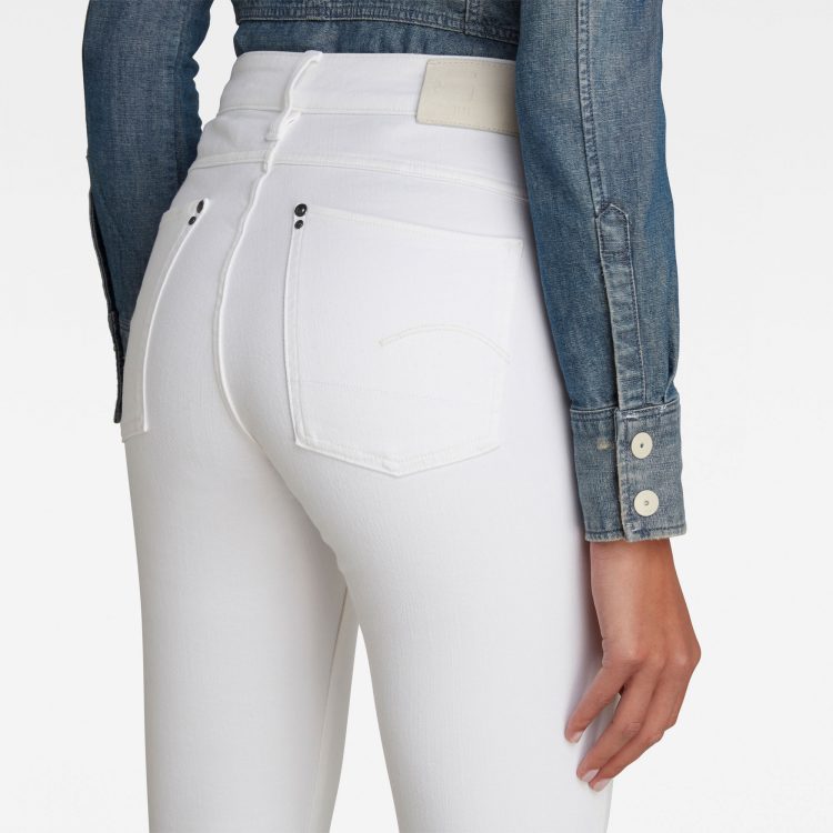 A tailored waistband wraps around tightly to eliminate gap. These jeans offer a zipper closure. Mid waist,Tight from top to bottom,5-pocket construction, angled coin pocket,Tailored waistband- no gap,Cow leather label at the backside waistband Versatile, high quality white superstretch with an authentic denim aesthetic, superb recovery and a soft handfeel. Weight 10 oz denim, 3×1 right hand twill construction,Excellent stretch and recovery,92% Organic cotton, 6% Elastomultiester, 2% Elastane (Lycra®),Organic cotton fibers are free of toxic pesticides and chemical fertilizers. Growing organic cotton helps to improve soil quality, prevents water contamination and conserves biodiversity. By choosing organic cotton, we can save up to 60% water.,The LYCRA® fibers we use are high performance stretch fibers which hold a Gold Level Material Health Certificate from the Cradle to Cradle Products Innovation Institute.
