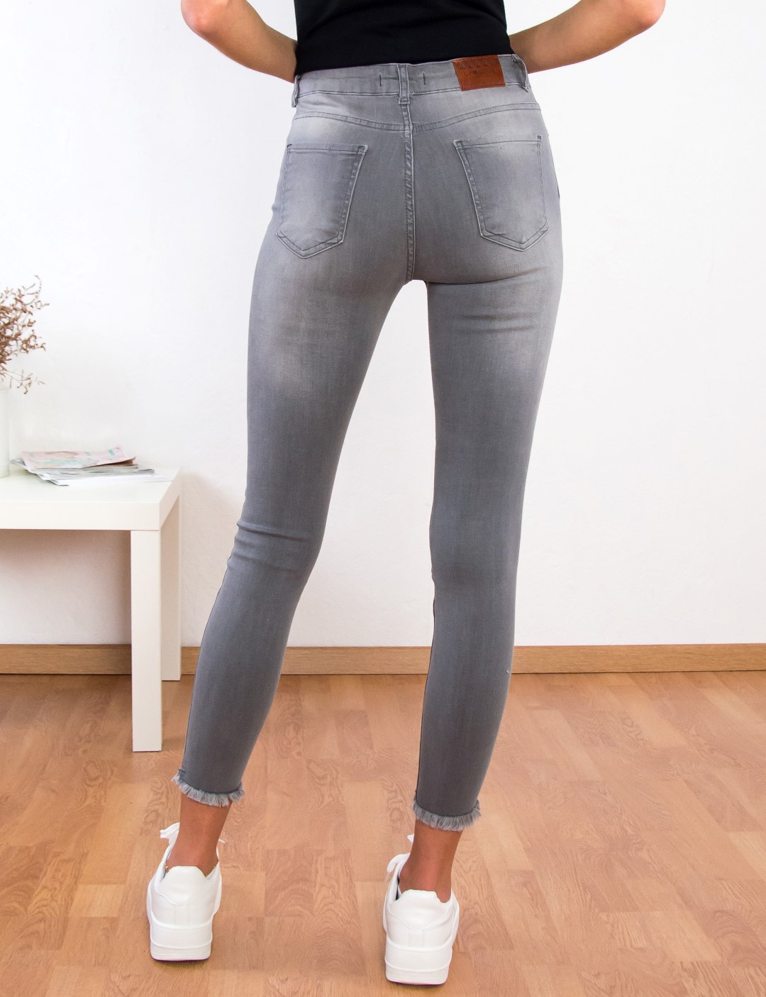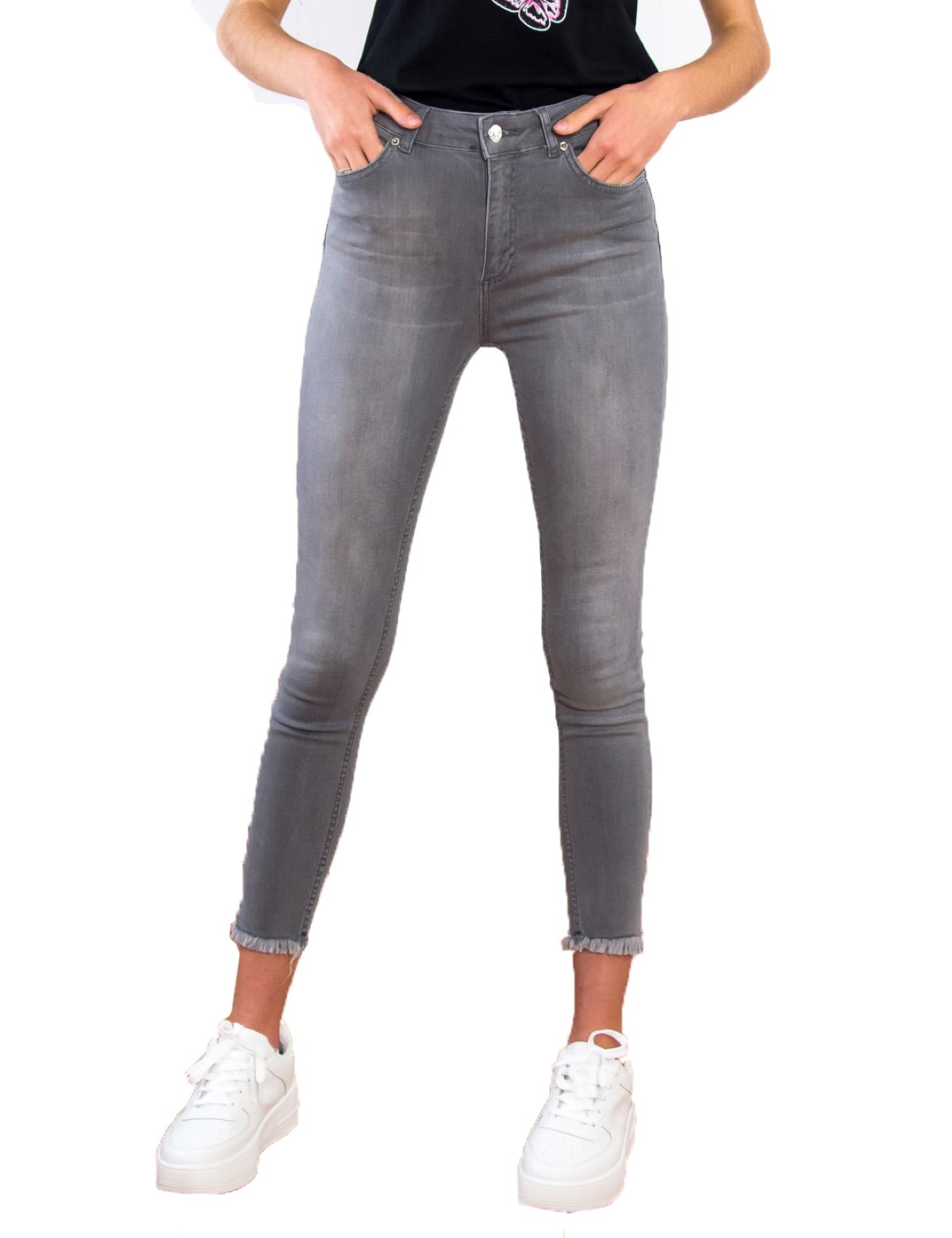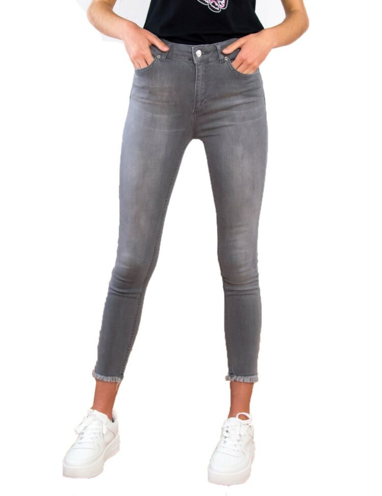 Γυναικείο σκούρο γκρι τζιν παντελόνιμε ξέφτια