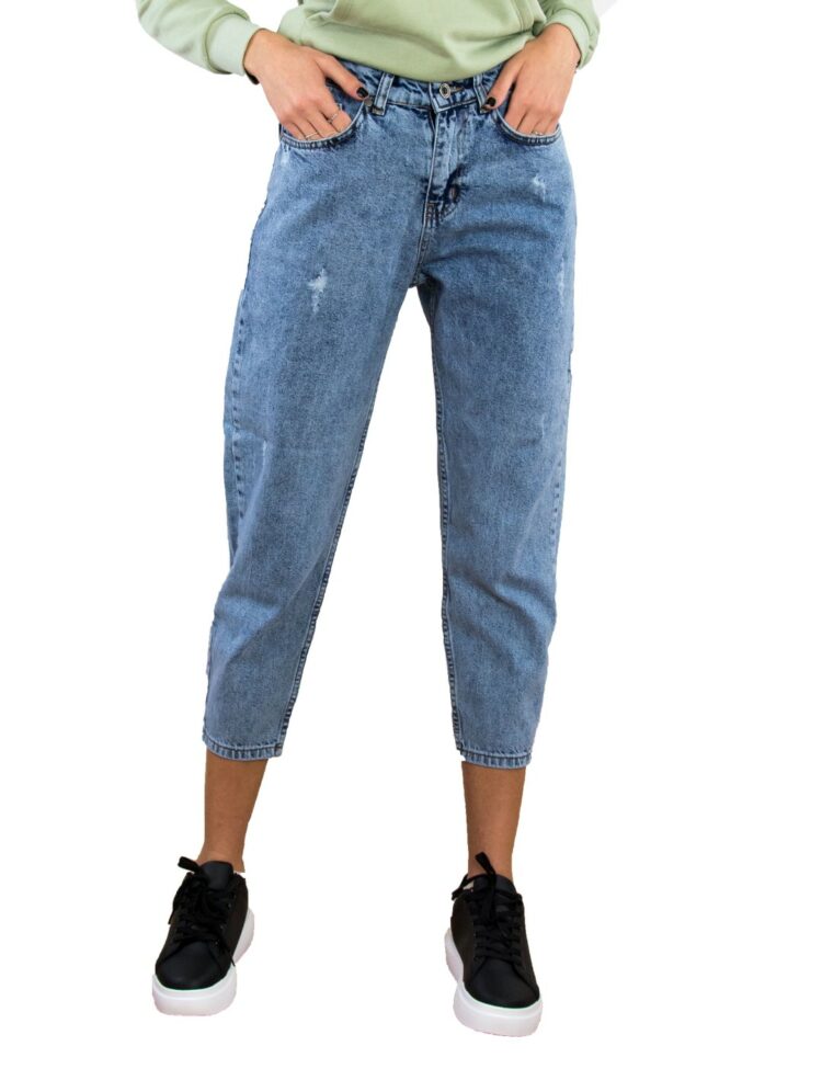 Γυναικείο χλώριο τζιν παντελόνι με φθορές Denim Plus Size