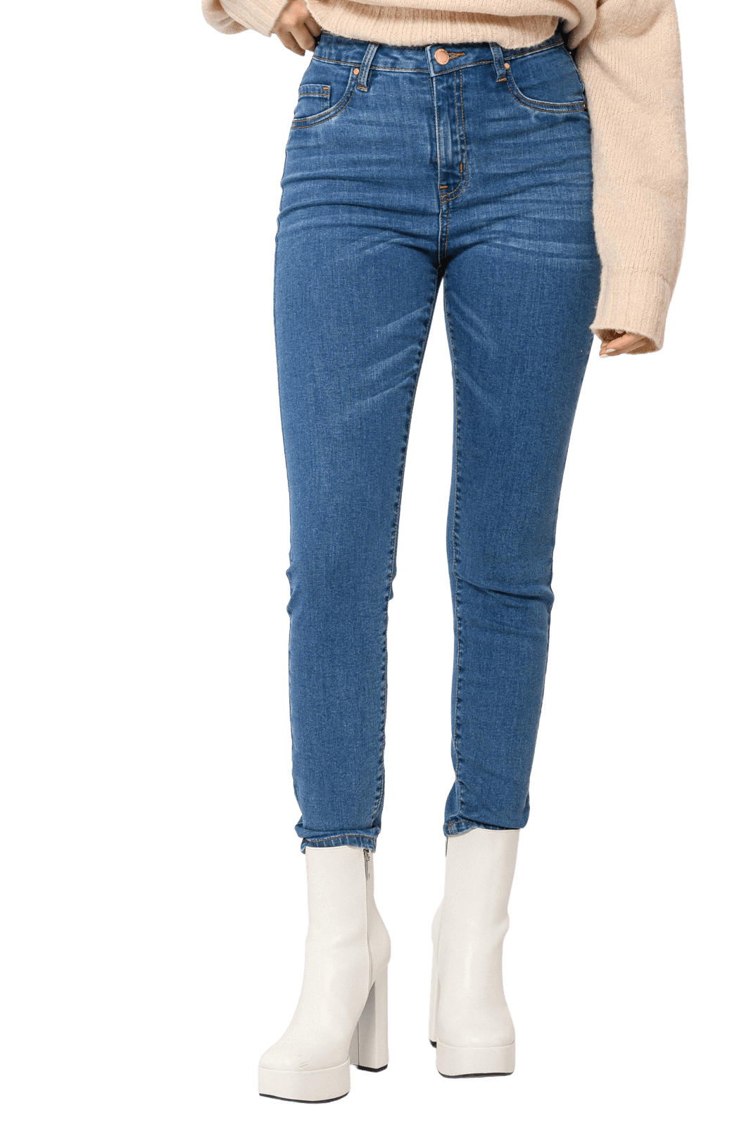 Ψηλόμεσο skinny ντένιμ με θηλιές για ζώνη στη μέση. Τσέπες στο πίσω μέρος και ψεύτικες τσέπες μπροστά. Κλείσιμο στο μπροστινό μέρος με κουμπί και φερμουάρ. Στενή εφαρμογή. Μέγεθος μοντέλου: 34 Ύψος μοντέλου: 172cm