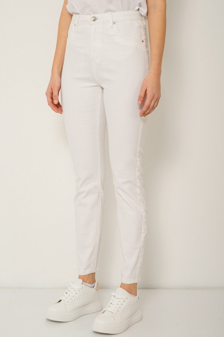 Ψηλόμεσο skinny ντένιμ με θηλιές για ζώνη στη μέση. Τσέπες στο πίσω μέρος και ψεύτικες τσέπες στο μπροστινό μέρος. Κλείσιμο μπροστά με κουμπί και φερμουάρ. Στενή εφαρμογή. Μέγεθος μοντέλου: 34 Ύψος μοντέλου: 172cm