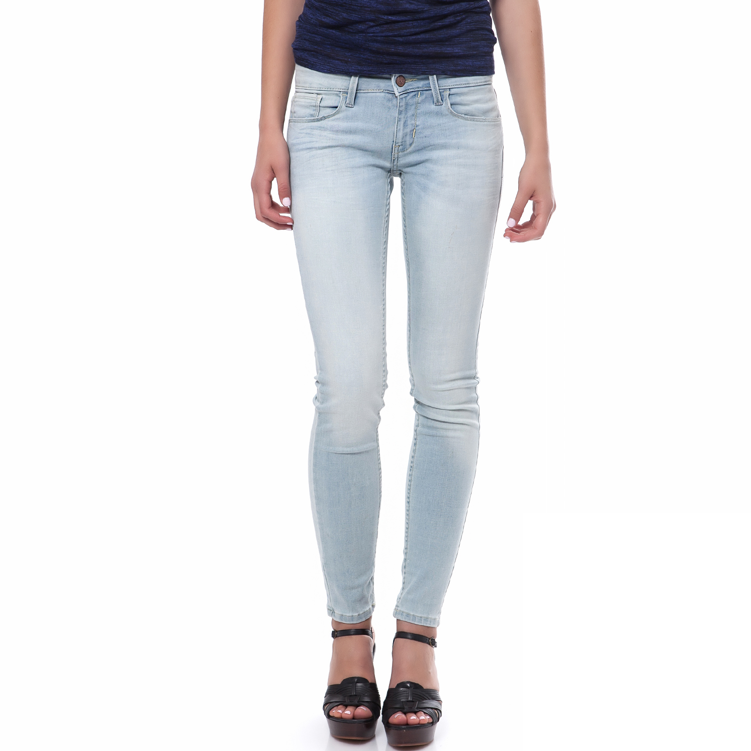 Βαμβακερό τζιν παντελόνι με skinny γραμμή σε μπλε ανοιχτό χρώμα, διακριτικά ξεβάμματα και τσέπες στο μπροστινό και πίσω μέρος.
