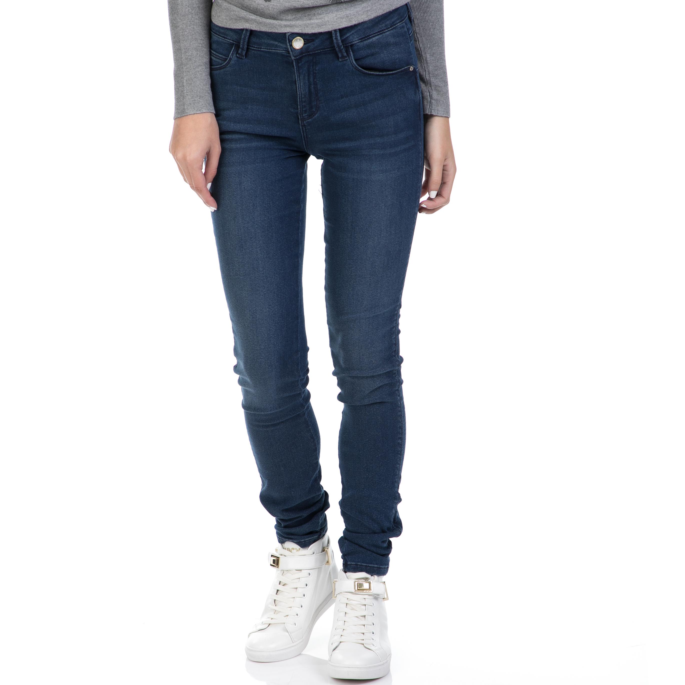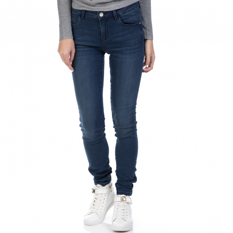 Βαμβακερό τζιν παντελόνι σε μπλε απόχρωση, skinny γραμμή, τσέπες μπροστά και πίσω και ελαστική εφαρμογή.
