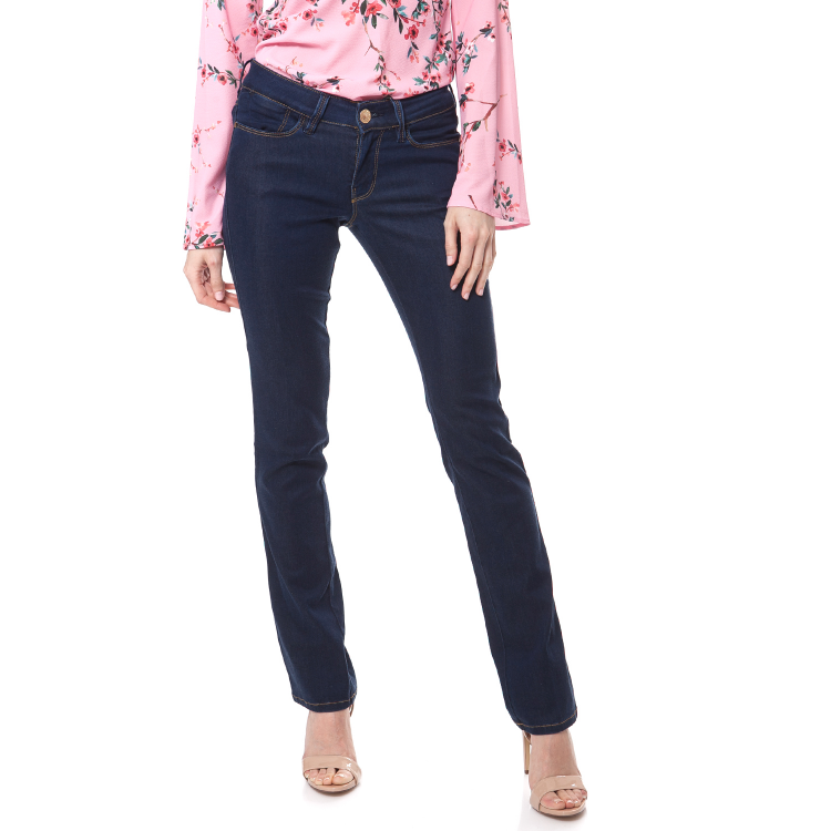 Βαμβακερό τζιν παντελόνι σε σκούρα απόχρωση, με ίσια γραμμή και τσέπες στο μπροστινό και πίσω μέρος.