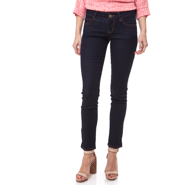 Βαμβακερό τζιν παντελόνι με στενή γραμμή σε μπλε σκούρα απόχρωση και τσέπες.