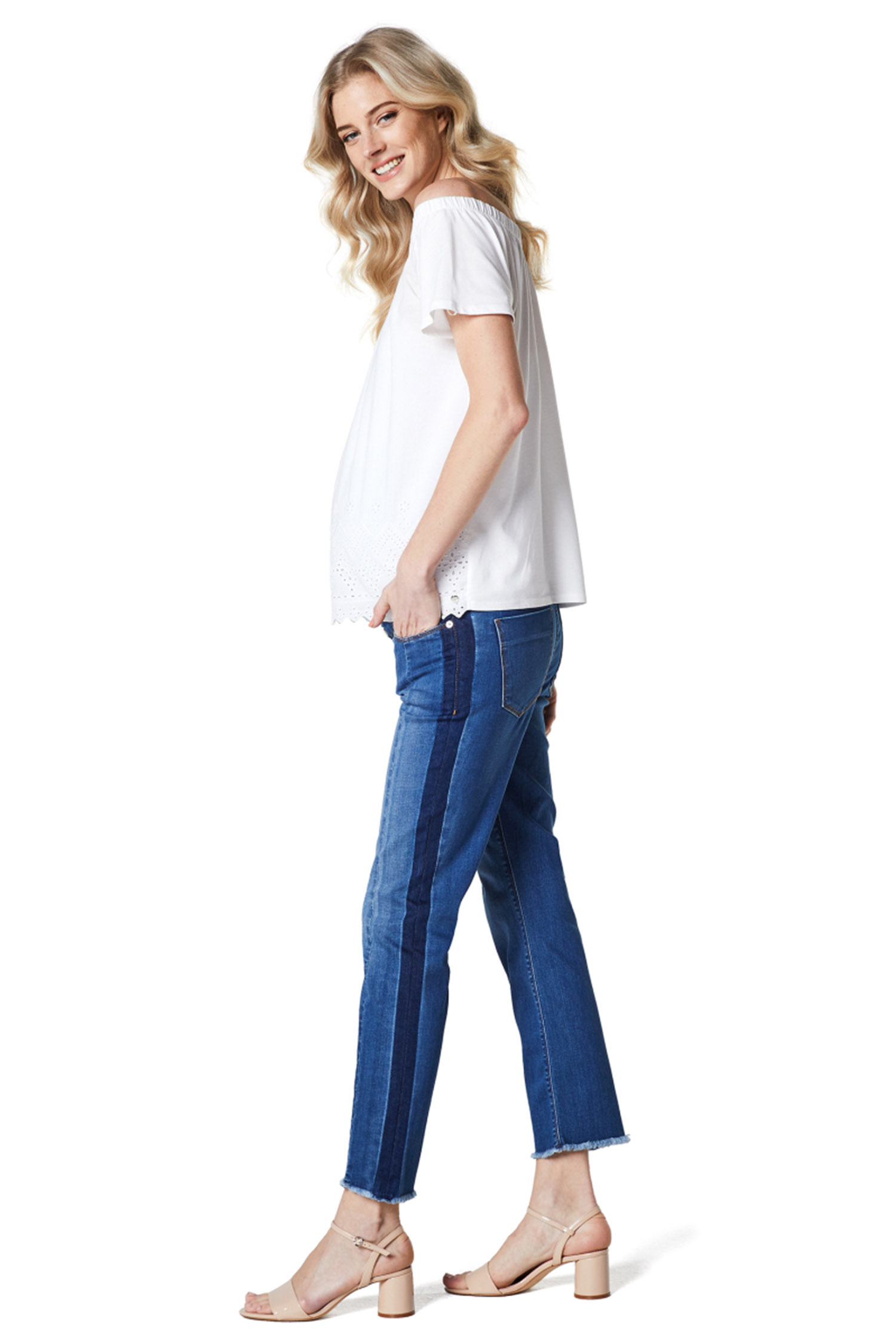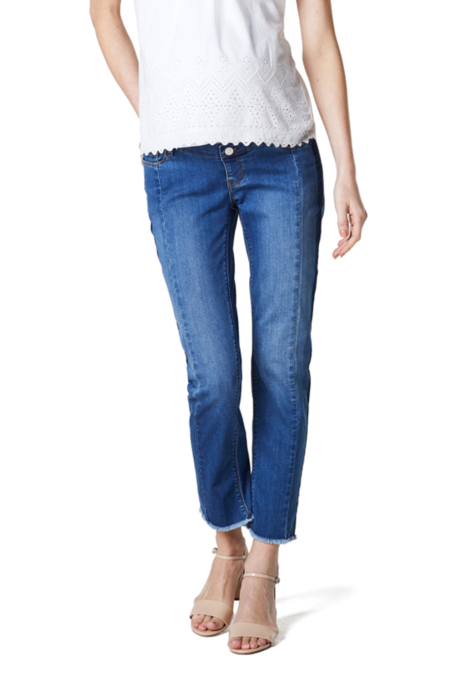 Τζιν παντελόνι εγκυμοσύνης σε μπλε χρώμα, ίσια γραμμή, διακοσμητική ρίγα στο πλάι, ελαστική φάσα στη κοιλιά, ρυθμιζόμενη μέση, μήκος 7/8, κατάλληλο από 1-9 μηνών.Το μοντέλο είναι 1.68 και φοράει μέγεθος Small.Επιλέξτε το ίδιο μέγεθος που φοράγατε πριν την εγκυμοσύνη διότι οι σχεδιαστές μας έχουν προβλέψει τις αλλαγές στο σώμα σας!