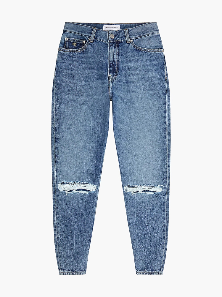 Βαμβακερό τζιν με σταθερό ύφασμα Ψηλή μέση Φερμουάρ Πέντατσέπο Κέντημα Calvin Klein στην πίσω μέση Το μοντέλο μας είναι 1,76 μέτρα (5ft 8in) και φοράει μέγεθος 28. Mom fit CKJ. Η γραμμή είναι εμπνευσμένη από τη δεκαετία του ’90 έχει ψηλή μέση που προσα