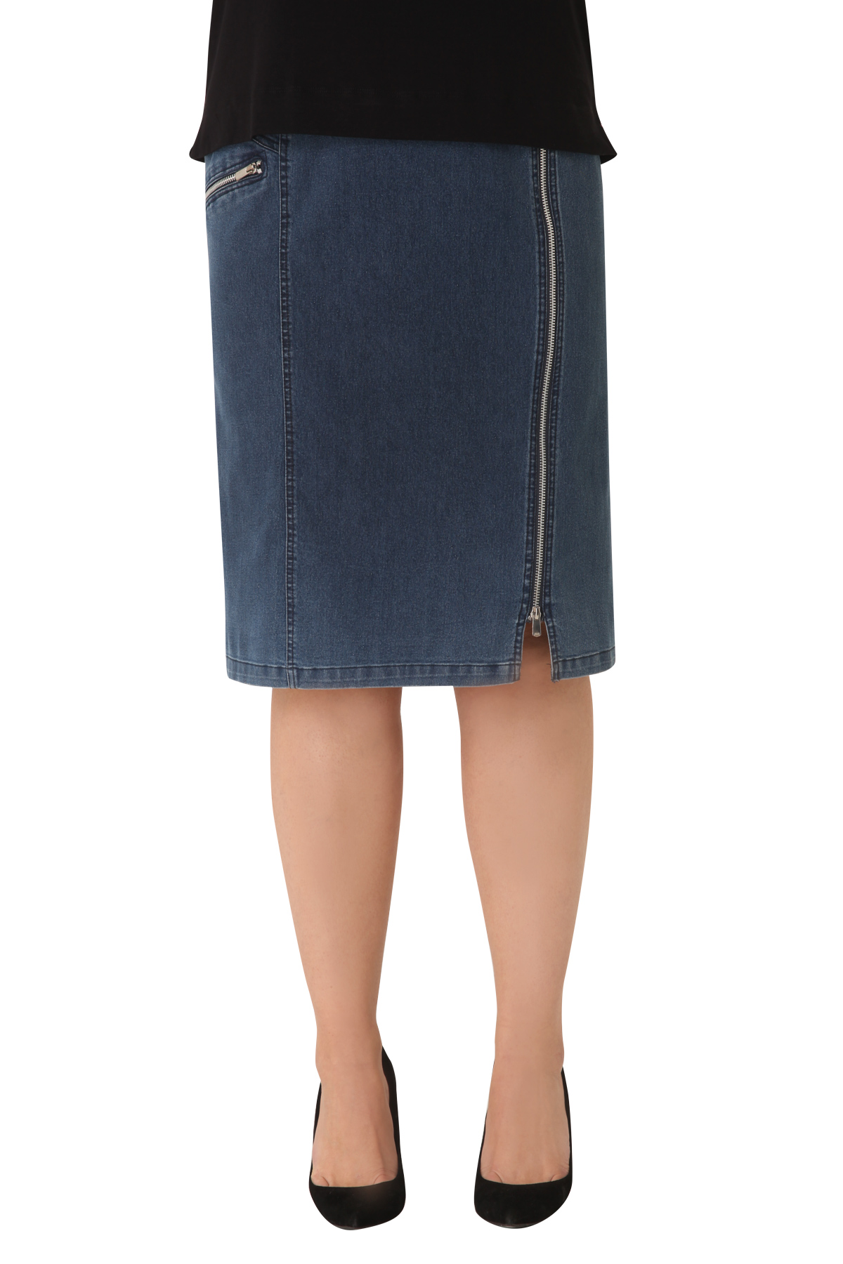 Midi φούστα denim με κάθετο φερμουάρ μπροστά και διακοσμητικά φερμουάρ στις τσέπες. Σε ίσια γραμμή που κολακεύει και λάστιχο στη μέση, που εξασφαλίζει άψογη εφαρμογή. Κλείνει πίσω με φερμουάρ για μεγαλύτερη άνεση όταν τη βάζετε ή τη βγάζετε. Ανοίξτε το κάθετο φερμουάρ μπροστά στο ύψος που θέλετε, για σαγηνευτικές εμφανίσεις! Συνδυάστε τη με πουκάμισα denim για ένα ολοκληρωμένο σύνολο denim ή με τοπ με πολύχρωμα μοτίβα για σύνολα γεμάτα φρεσκάδα!