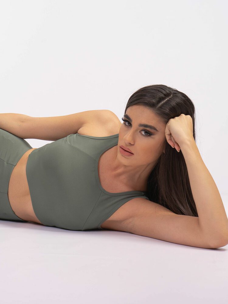 Alinta water green Αθλητικό μπουστάκι μακρύ με ραφές στο μπροστινό μέρος και φάσα κάτω από το στήθος για σταθερή εφαρμογή.
