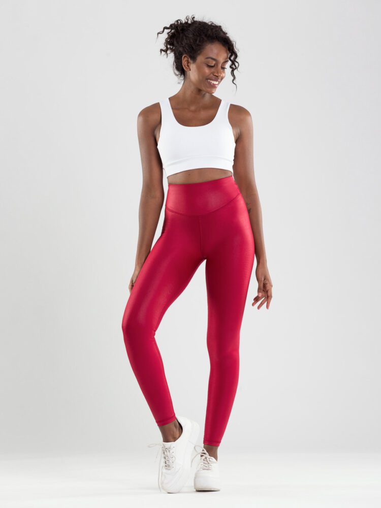 Irida Μπορντό Ψηλόμεσο pushup κολάν σύσφιξης σε διαχρονική μονοχρωμία με Leather Look ύφασμα.