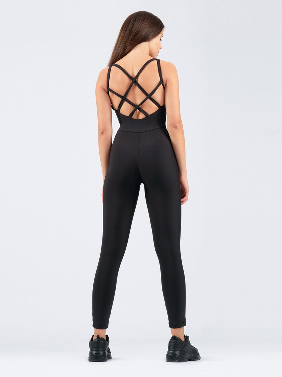 Peard Μαύρο Ολόσωμη φόρμα-κολάν σύσφιξης σε διαχρονική μονοχρωμία με σταυρωτή πλάτη.
