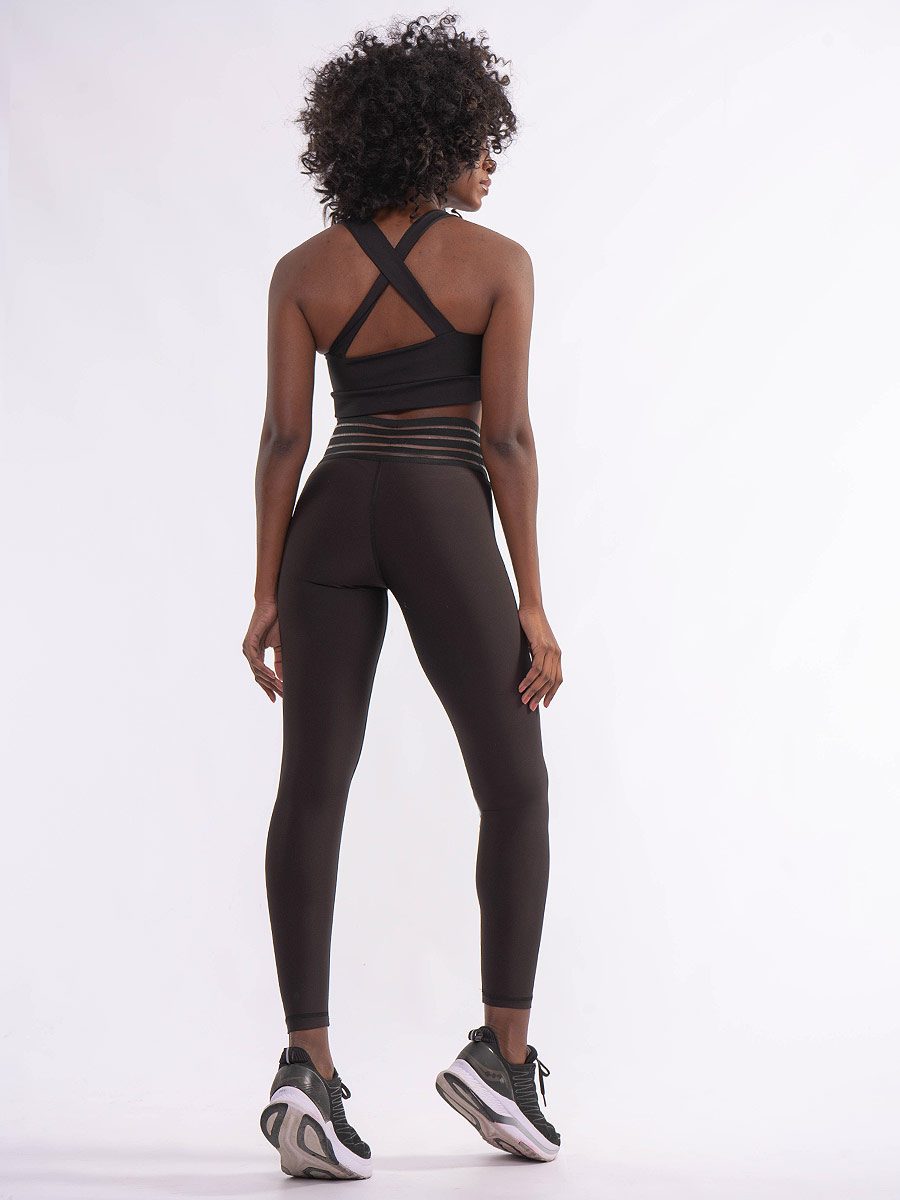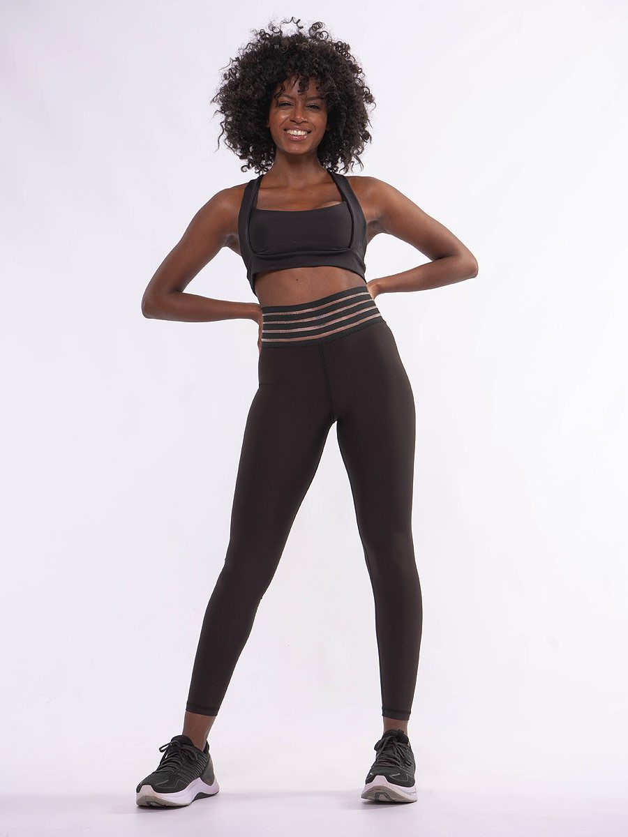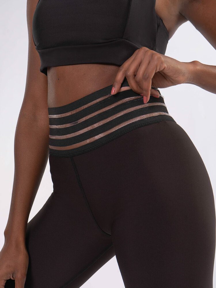 Philonese Μαύρο Ψηλόμεσο pushup κολάν σύσφιξης με περίτεχνο σχέδιο στη μέση το οποίο δημιουργεί το εφέ διαφάνειας .