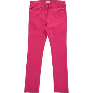 Πολύ άνετο παιδικό στρετς τζιν παντελόνι για κορίτσια. Η γραμμή του είναι straight cut με τσέπες με φερμουάρ στο μπροστά μέρος και μια πολύ ιδιαίτερη λεπτομέρεια στο κουμπί της μέσης