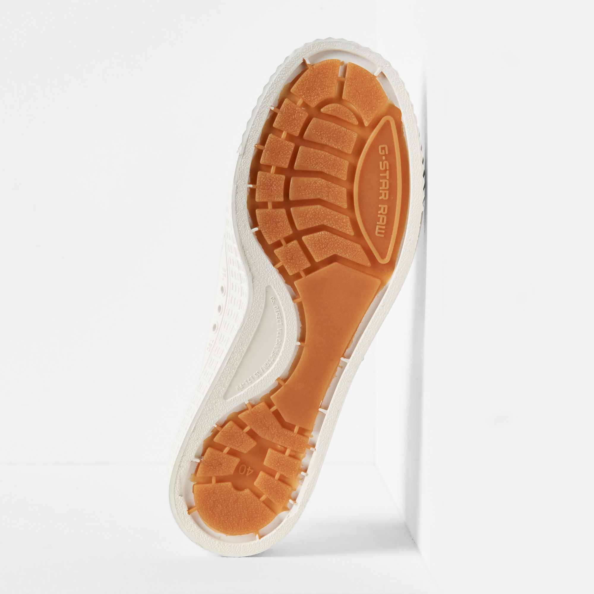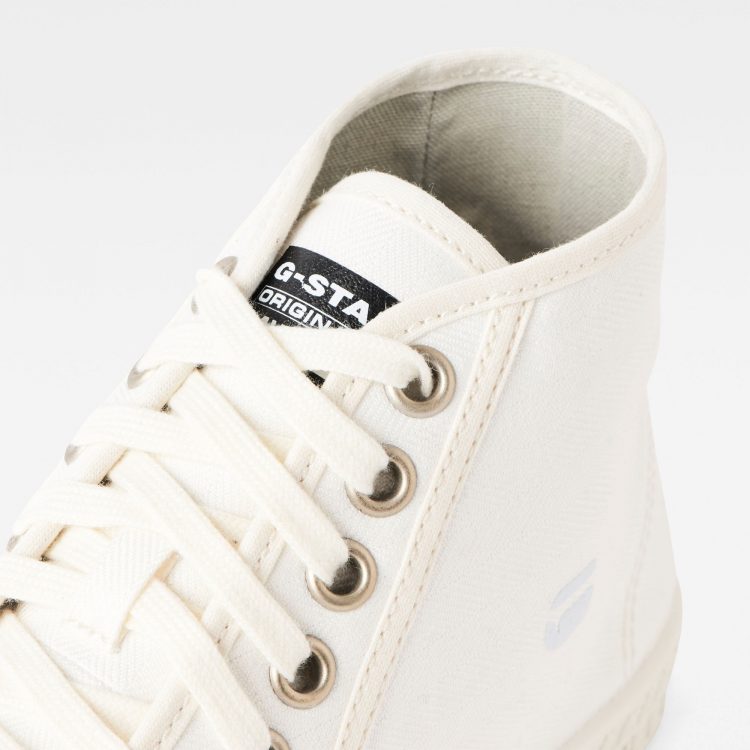 The flat lace system is reinforced with metallic eyelets. A shaped sole and toe-bumper make them complete. Ankle height,Flat laces, reinforced with metallic eyelets,Binding edges- covered seams,Shaped sole- covered toe,Ventilation holes at the inside,Printed G-Star RAW Originals graphic at the tongue, RAW print at the side A woven fabric showing a fine herringbone texture. Woven,Weight 5.75 oz denim,100% Cotton,Sole: Rubber