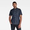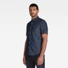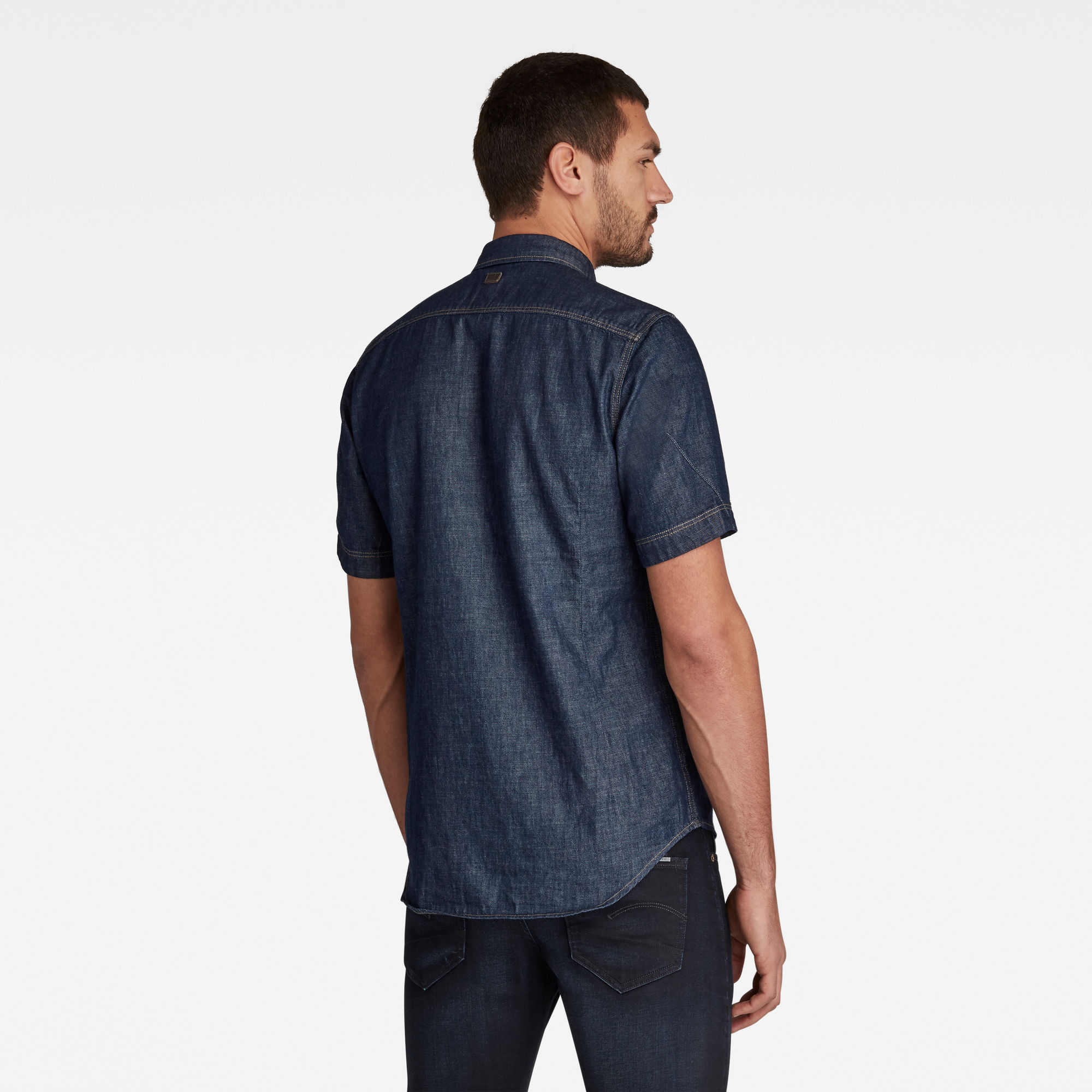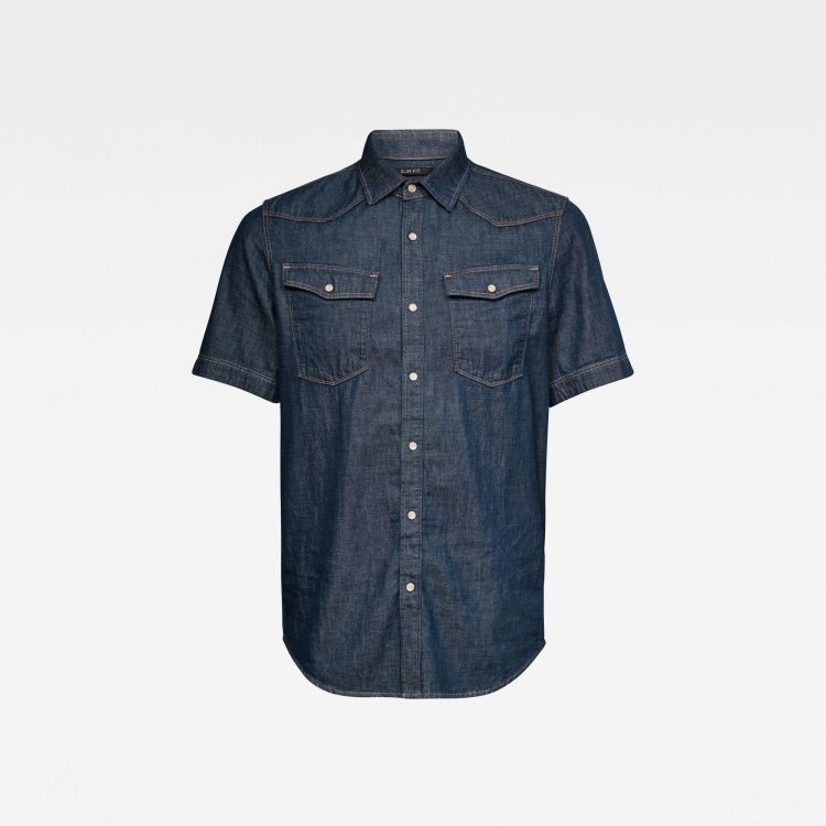 Patched on flap pockets are combined with shoulder panels. This shirt offers a snap button closure. Shirt collar,Short sleeves, straight inset, cuffed,Western chest pockets- snap closure,Slightly curved hem,Shaped seams at the back side,Snap button closure A lighter weight denim with a smooth and supple handle. Weight 7.2 oz denim,100% Cotton,By buying cotton products from G-Star RAW Raw, you're supporting more sustainable cotton farming.