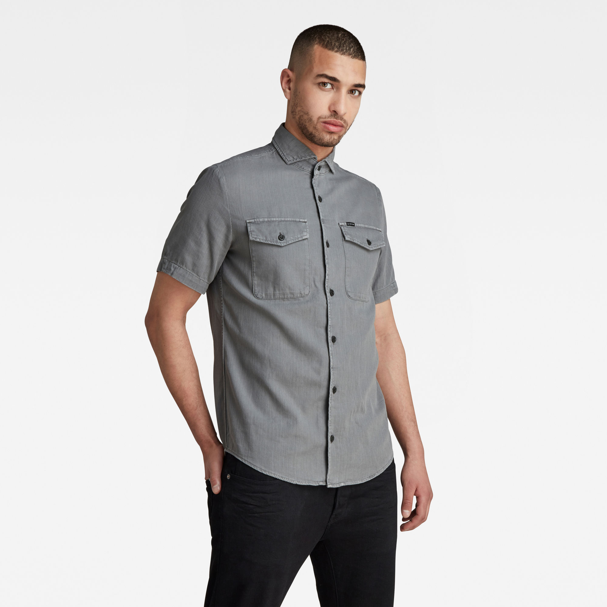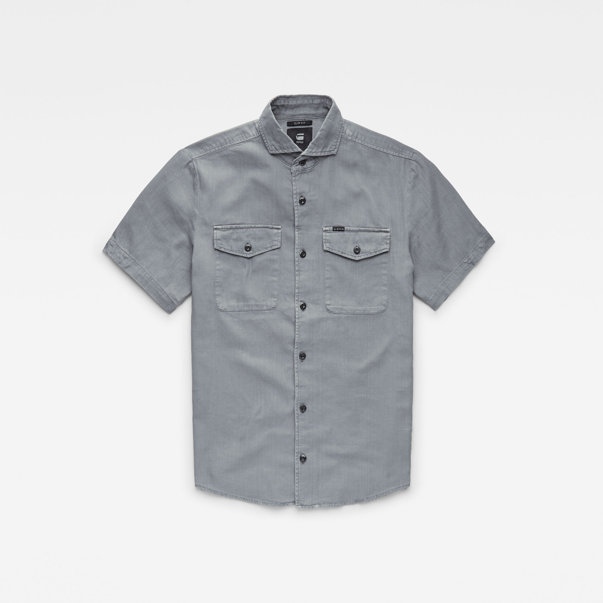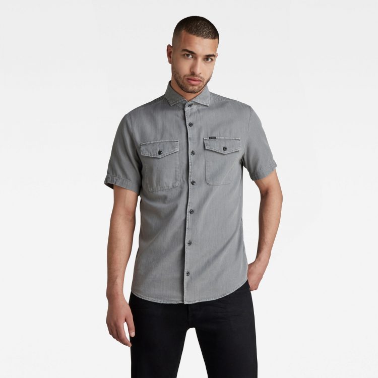 The chest pockets are designed with a flap and offer a button closure. This short sleeved shirt offers a button closure and a slightly rounded hem. Shirt collar,Short sleeves,Chest pockets with flap – button closure,Slightly curved hem,Button closure This lighter weight denim is created out of breathable cotton and offers a supple handle in a finely woven uneven structure. Lighter weight 7.3 oz denim,2×2 Left hand twill construction- soft touch,100% Cotton,By buying cotton products from G-Star RAW Raw, you're supporting more sustainable cotton farming.