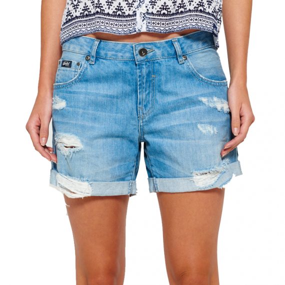 Γυναικείο μονόχρωμο τζιν σορτς με λάστιχο στο πάνω μέρος και ρεβέρ στο τελειωμά του. Διαθέτει τσέπες και κλείνει με κουμπί και φερμουάρ. Κανονική η εφαρμογή του Σύνθεση: 100% cotton Το μοντέλο έχει ύψος 1.77 και 55 κιλά. Φοράει μέγεθος 34