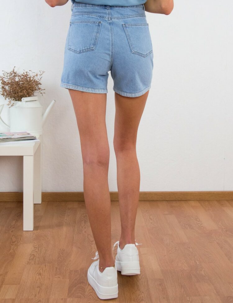 Γυναικεία τζιν σορτσ με σκισίματα και τσέπες. Κλείνει με κουμπί και φερμουάρ. Στενή εφαρμογή Σταθερό το ύφασμά του Σύνθεση: 100% cotton Το μοντέλο έχει ύψος 1,77 και 55 κιλά, φοράει μέγεθος 28