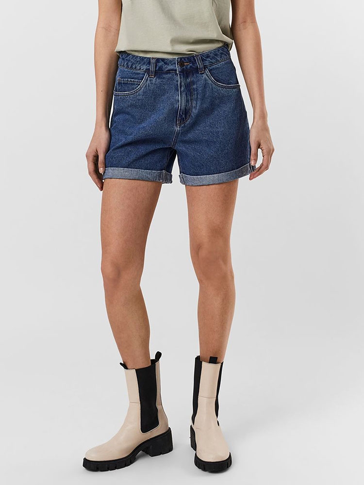 Τζιν σορτς Vero Moda Υψηλή μέση Κλείσιμο κουμπιού και φερμουάρ Χαλαρή εφαρμογή Το μοντέλο έχει ύψος 177 cm και φορά μέγεθος S. Ιδανικό σορτσάκι για όλες τις ώρες που δεν πρέπει να λείπει από την ντουλάπα μας! Ξέρεις οτι μπορείς πάντα να βασίζεσαι