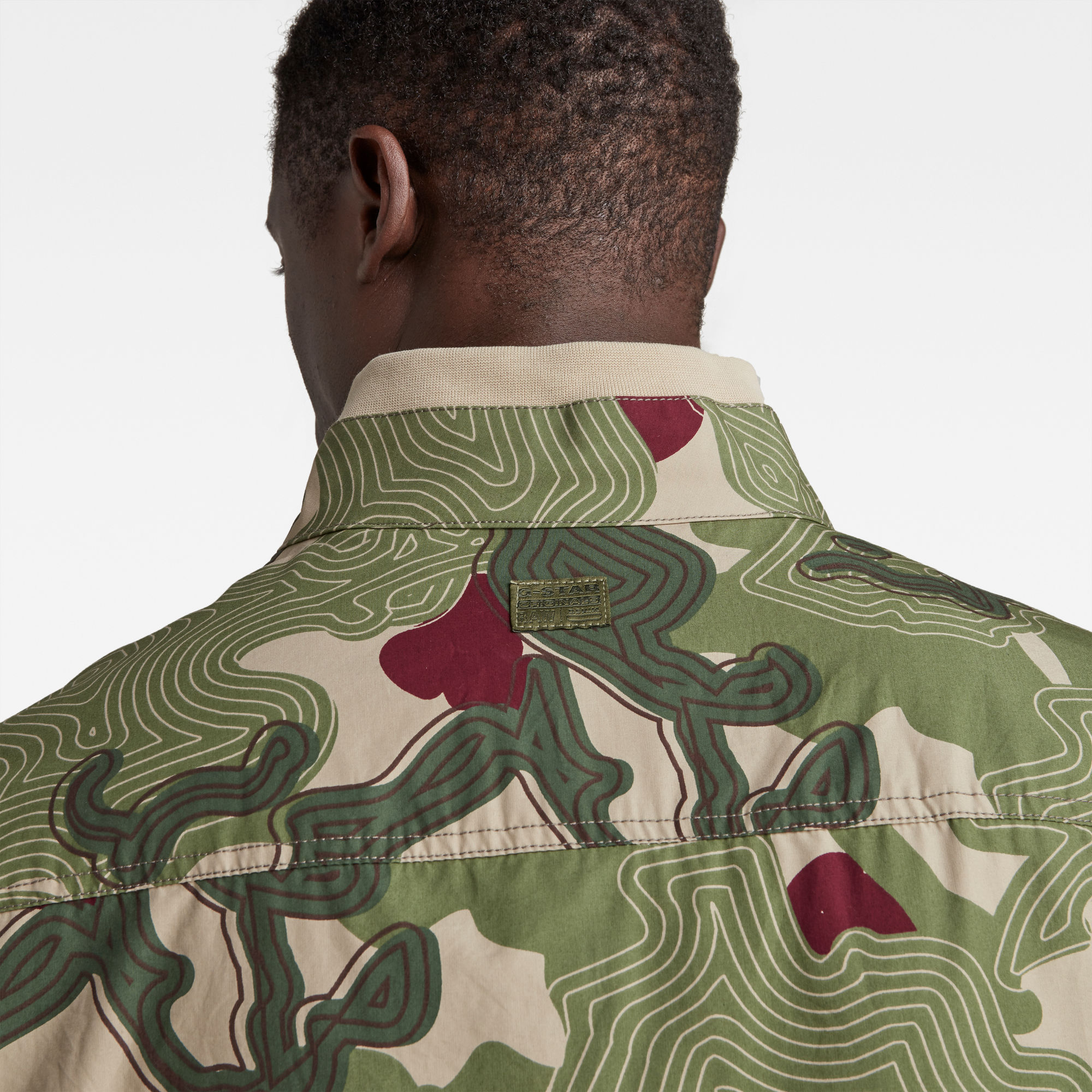 A woven tab is added to the front to allow for an easy access. This graphic printed overshirt shows roomy chest pockets with a flap and button closure. The long sleeves offer an adjustable cuff, as a double button is applied. At the front shoulder an additional flap pocket is created with a strike through stitch and a Velcro closure. Also side seam pockets are added to this indoor jacket. The woven graphic printed labels at the back make it complete. Raised collar, ribbed edge- tab added,Long sleeves, cuffed- adjustable button closure,Roomy front pockets with flap and button closure,Front shoulder pocket- flap and Velcro closure,Side seam pockets,Button front closure, Velcro closure at the top Semi-compact, 1×1 poplin construction made of fine cotton yarns. Surface has been micro sanded to provide a soft paper touch handfeel. An allover graphic print is added. Poplin plain weave,Sanded finish: soft touch,Allover print,100% Cotton,By buying cotton products from G-Star RAW Raw, you're supporting more sustainable cotton farming.