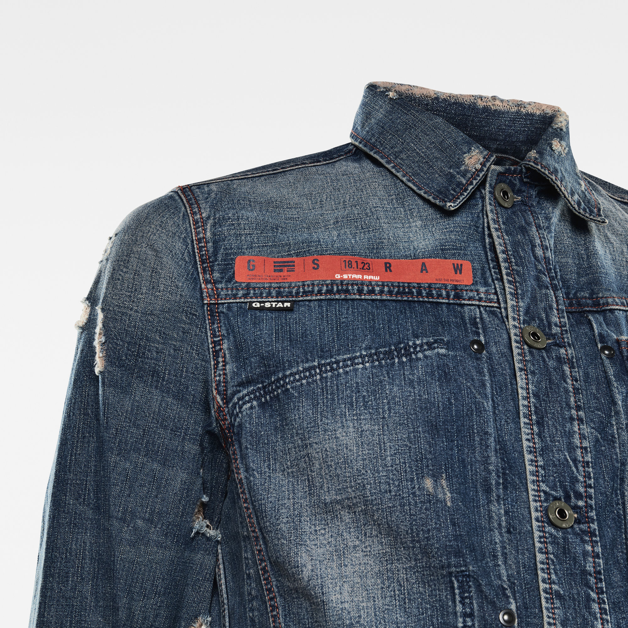 Along the center front the fabric is tucked with rivets creating a 3D effect. Turned chest pockets and side seam pockets add a work wear note. This version offers an embroidered graphic at the side and a leather G Raw label to the lower back hip. A rough seam finish is applied to the lower back sleeves. Flat collar,Turned chest pockets, 1 flap pocket with a button closure and 1 stitched through inside pocket. Side pockets,Rivets on a tucked vertical seam-front panel,Adjustable waist at back side- shank buttons,Shank button closure,Embroidered graphic at the side and a printed graphic at the front shoulder This indigo dyed denim is woven in a lighter weight 2X1 right hand twill construction. Weight 9.6 oz denim,100% Cotton,By buying cotton products from G-Star RAW Raw, you're supporting more sustainable cotton farming.