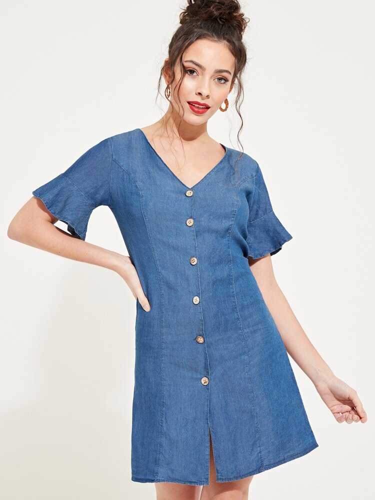 Όμορφο κοντό φόρεμα τζιν με κουμπιά