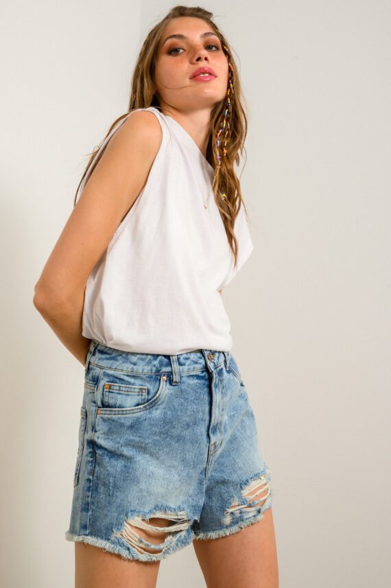 Ντένιμ βερμούδα σορτς με σκισίματα (BLACK ACID)