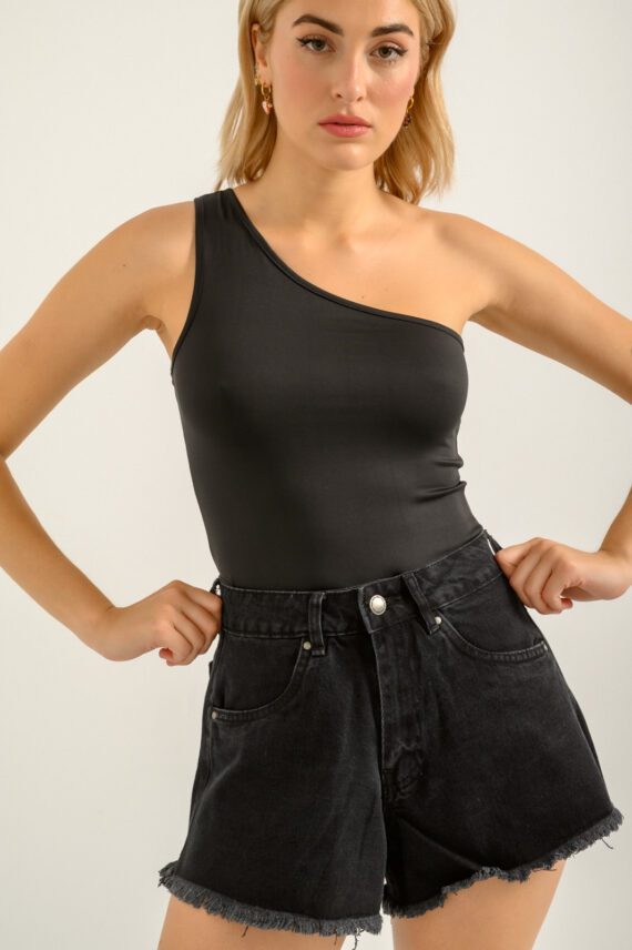 Ντένιμ σορτς με ξέφτια (BLACK)